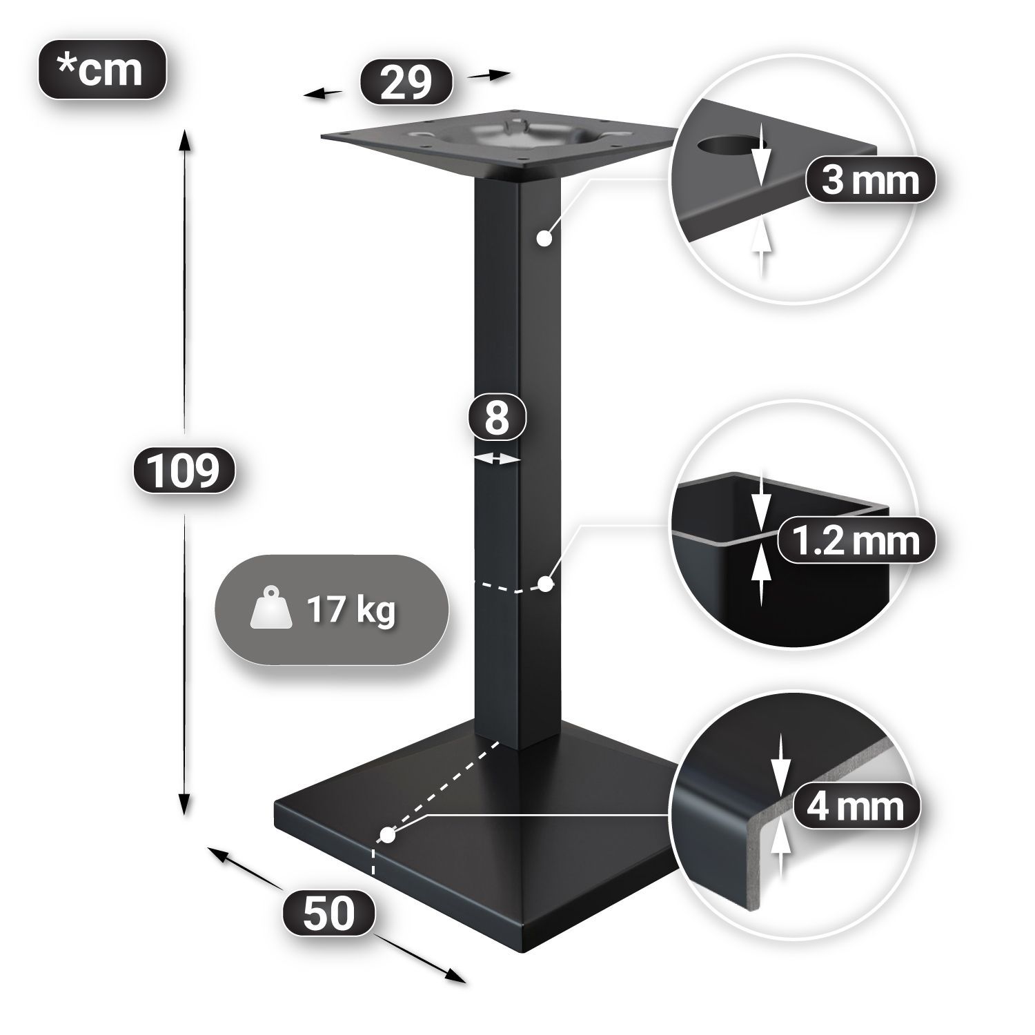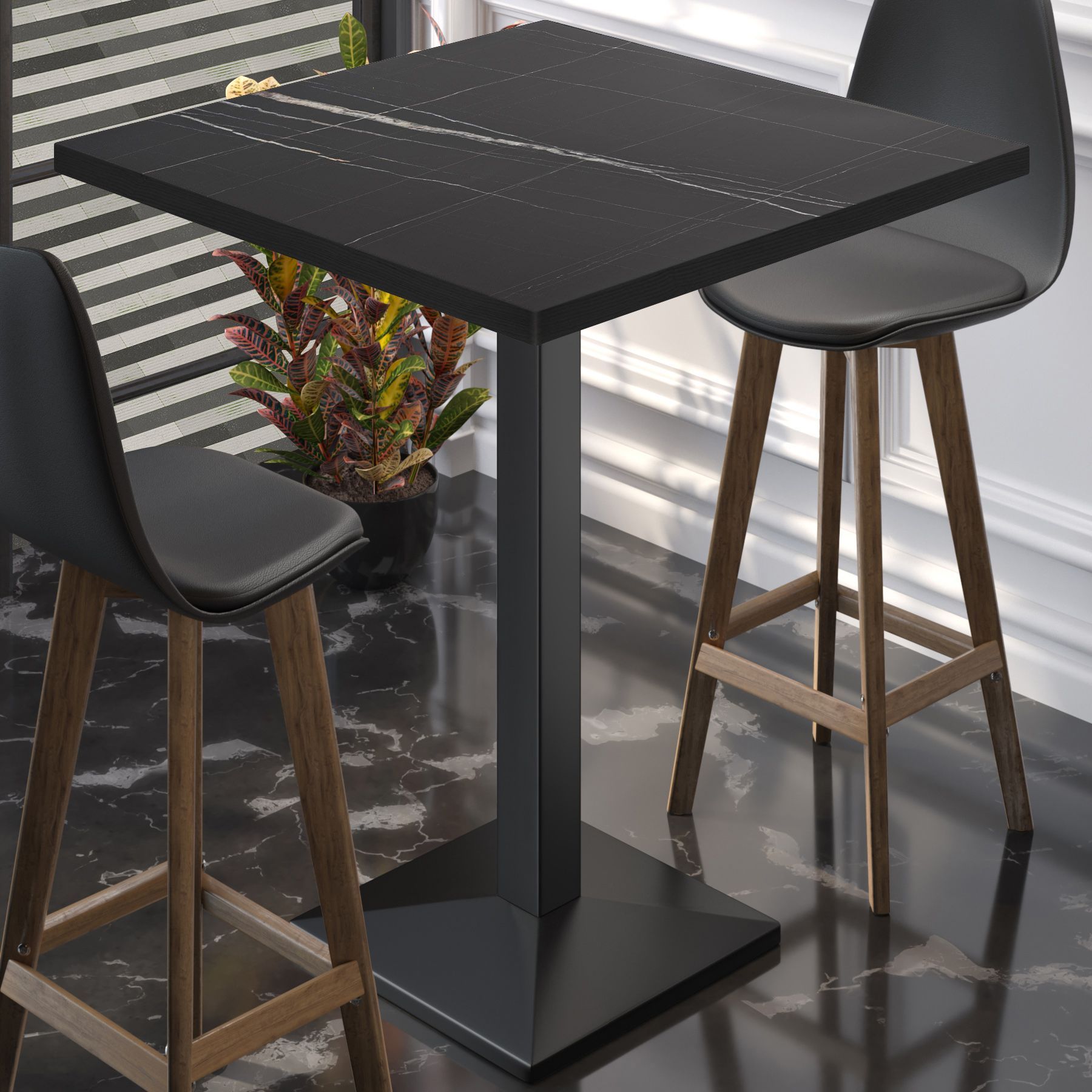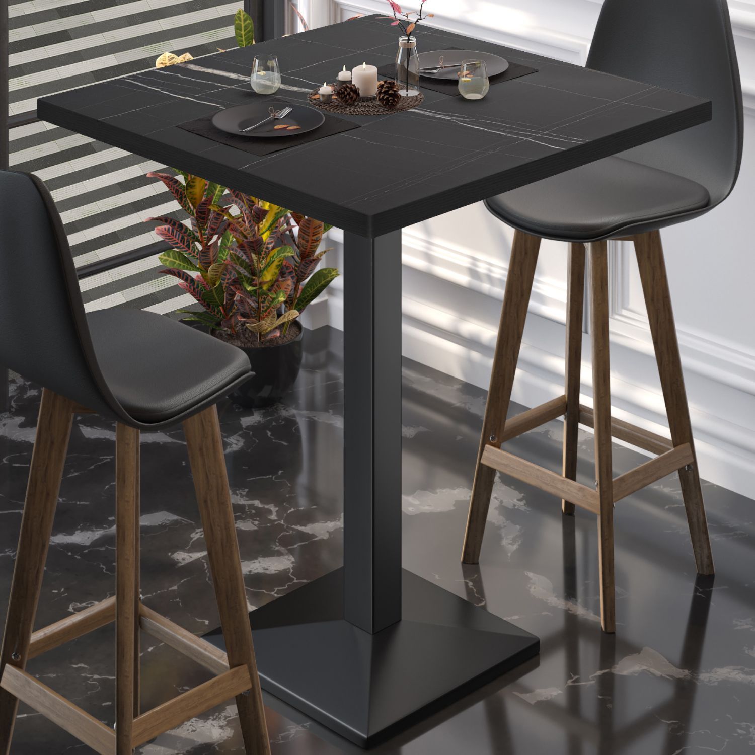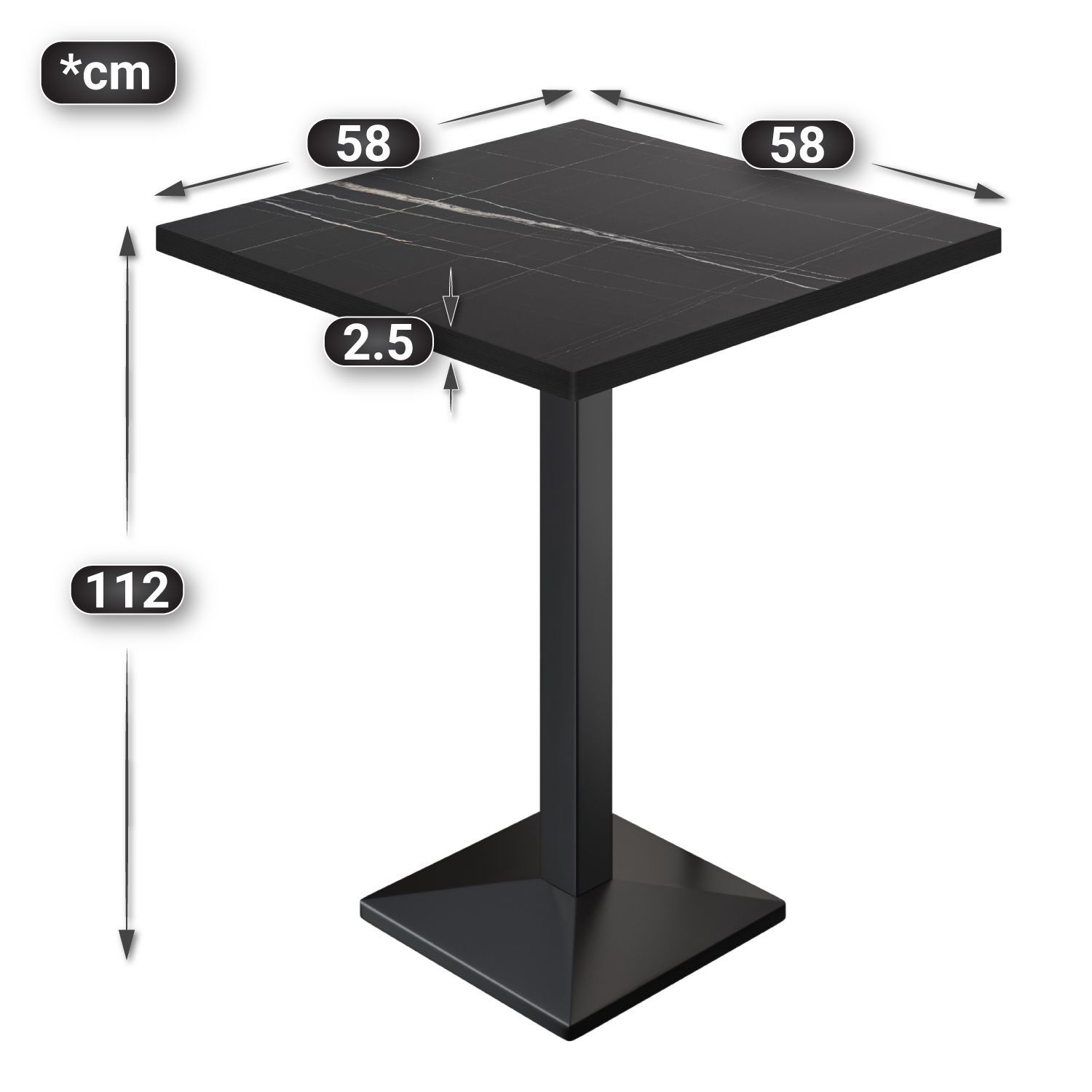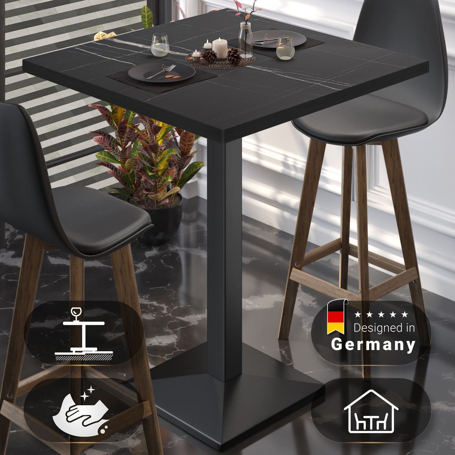 BPA | Bistro Stehtisch | 60 x 60 x 112 cm | Schwarzer Rand | Quadratisch | Schwarz M