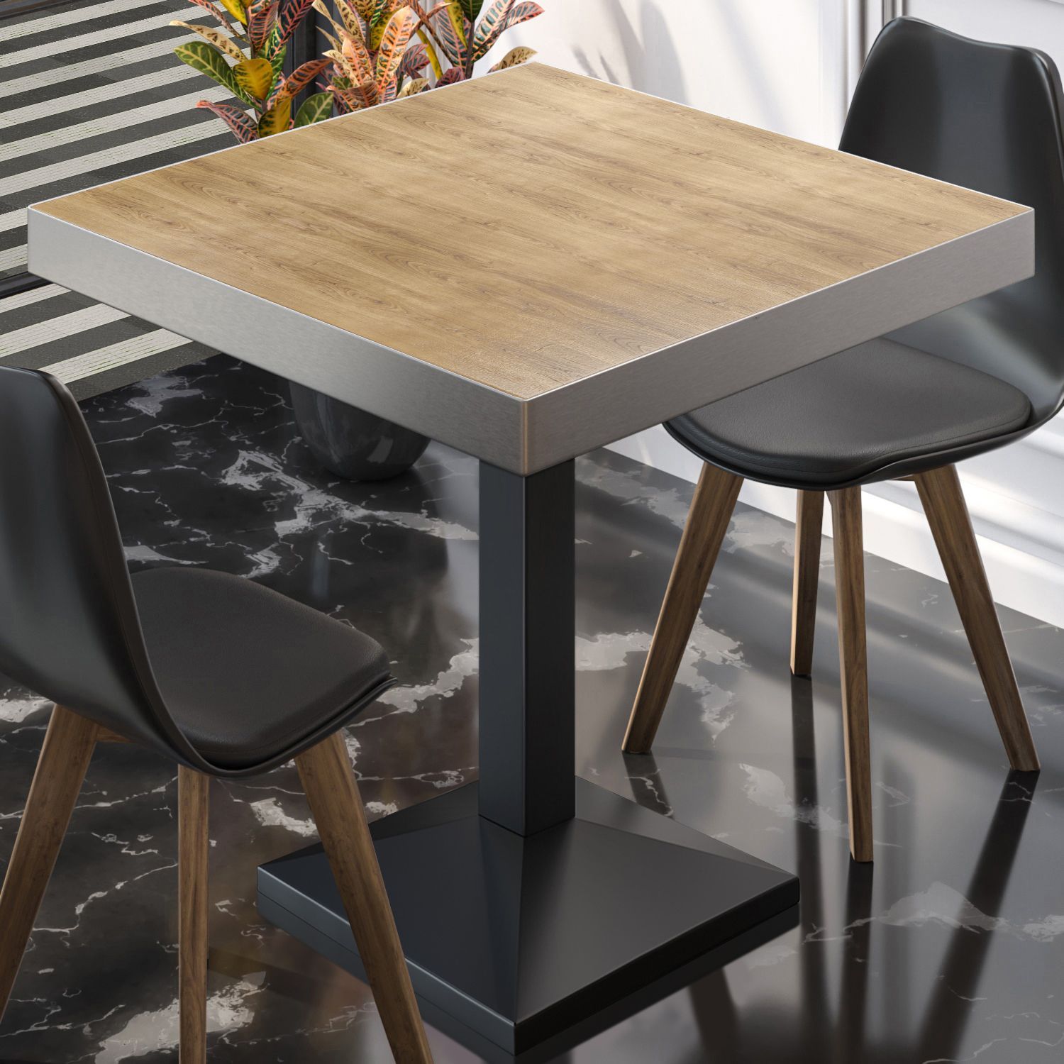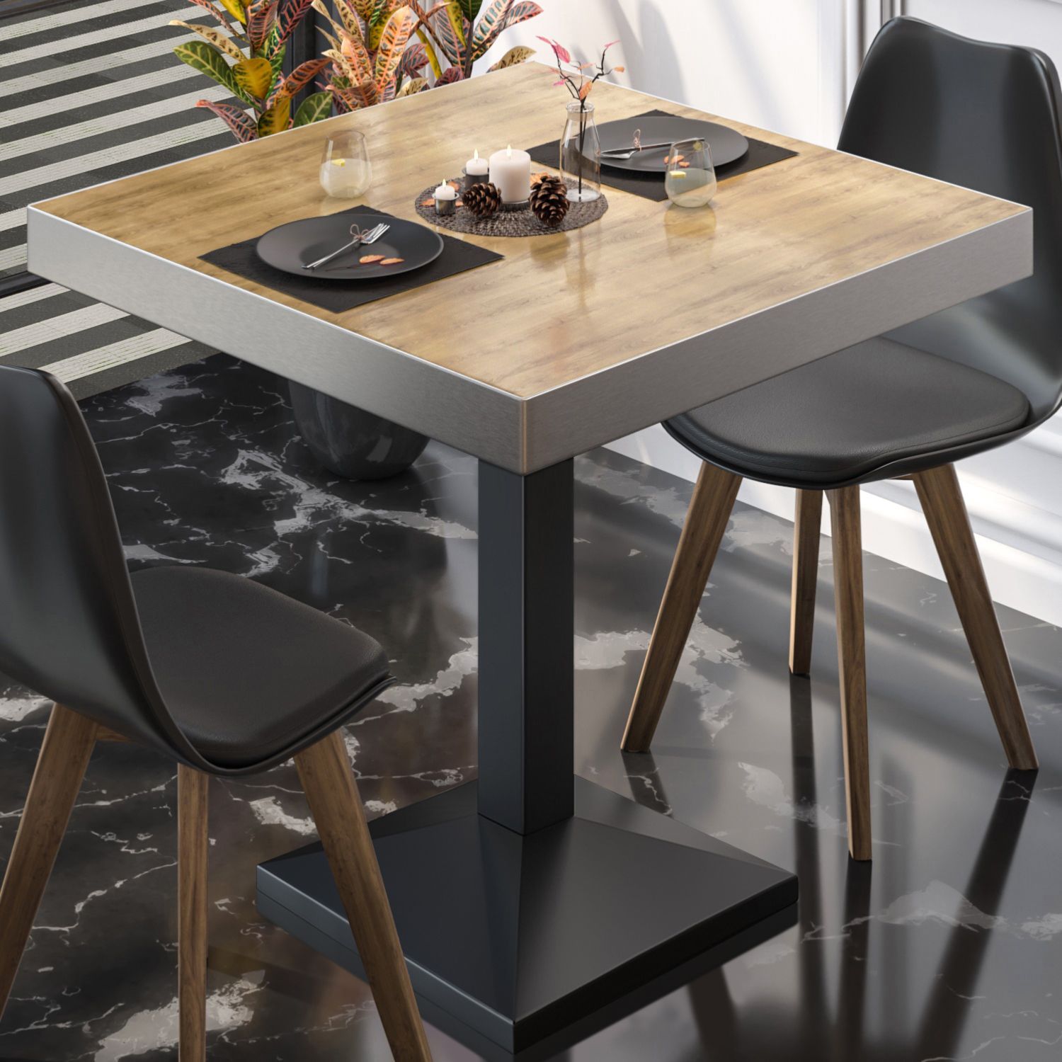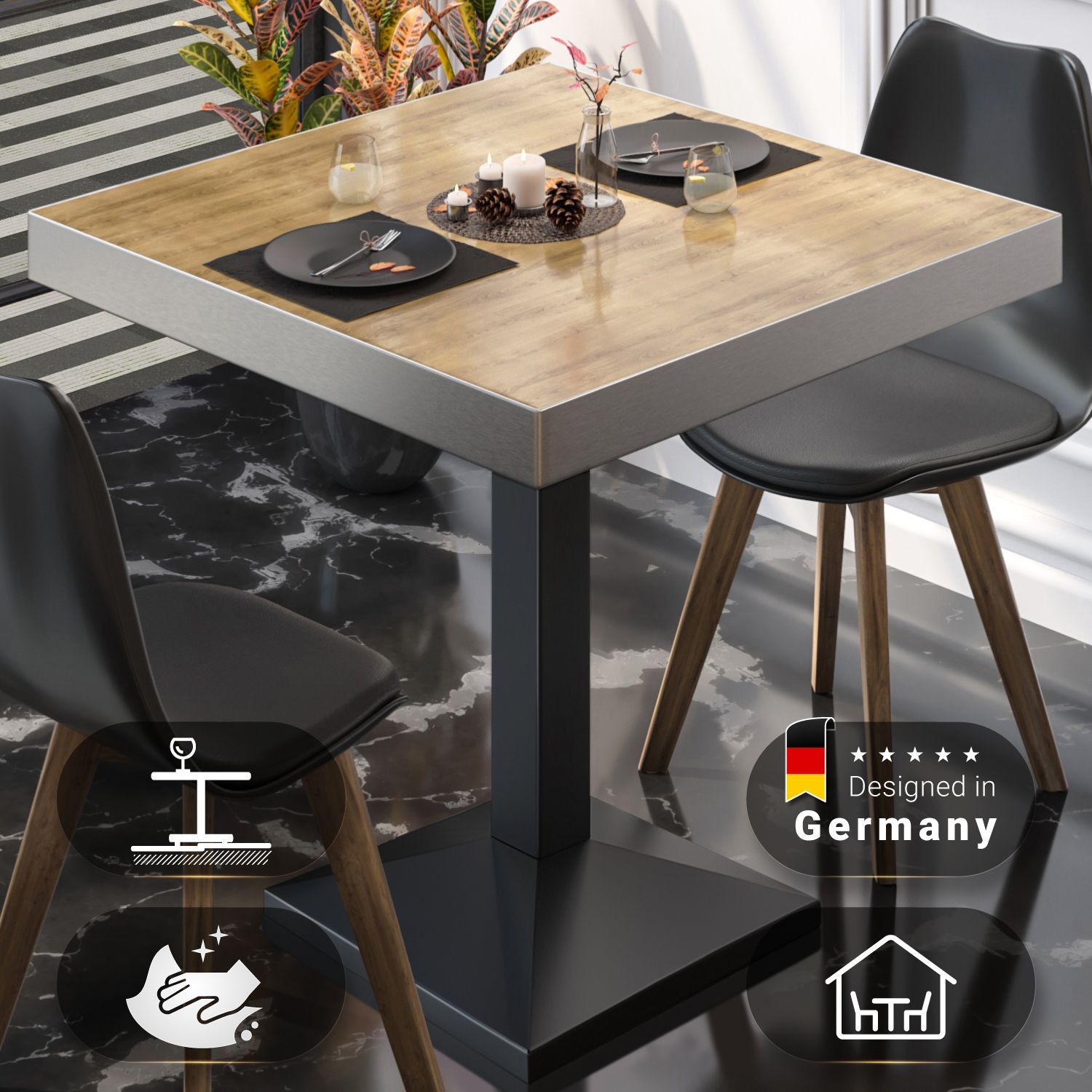 BPA | Bistro Tisch | Quadratisch | Edelstahl Rand | 70 x 70 x 81 cm | Eiche / Schwar