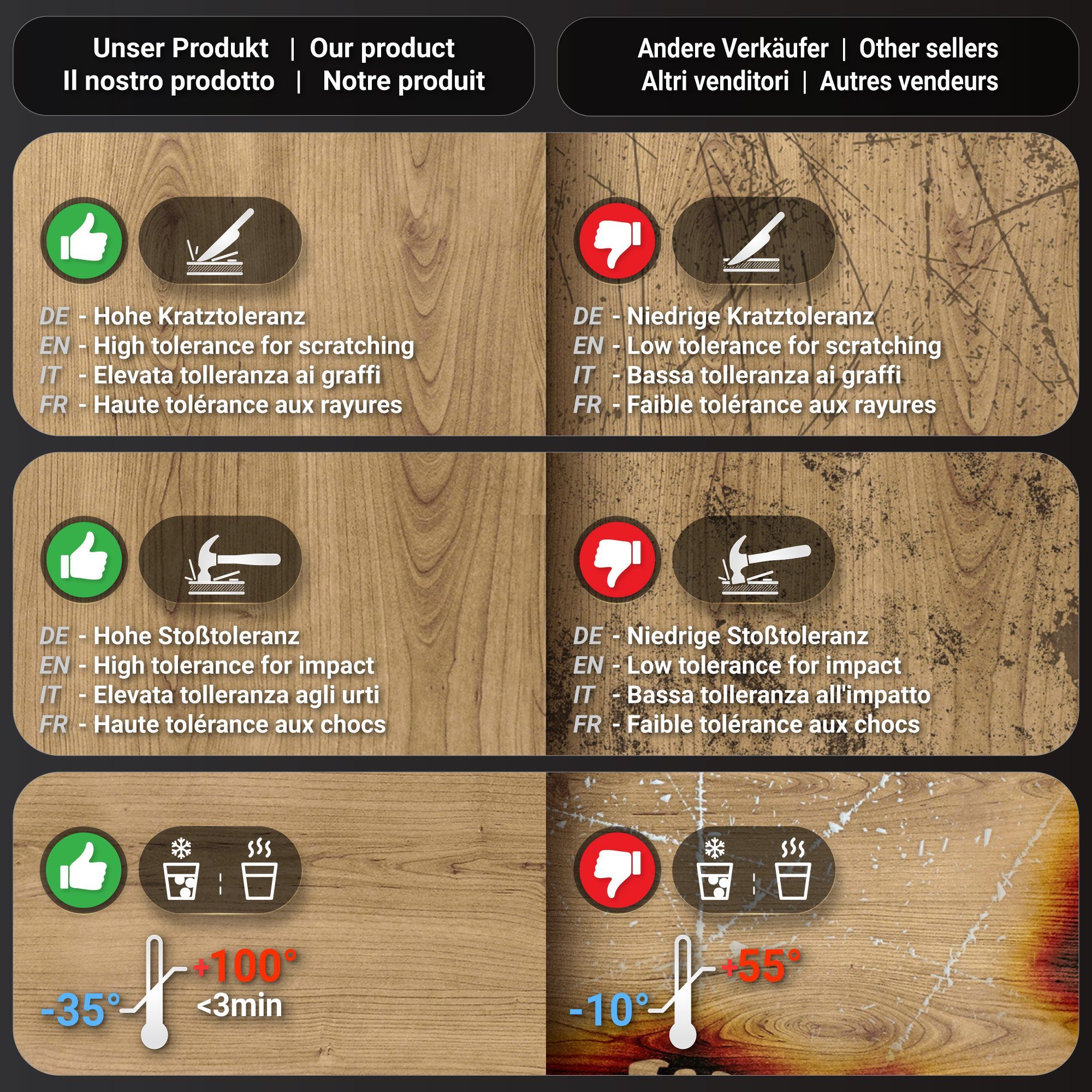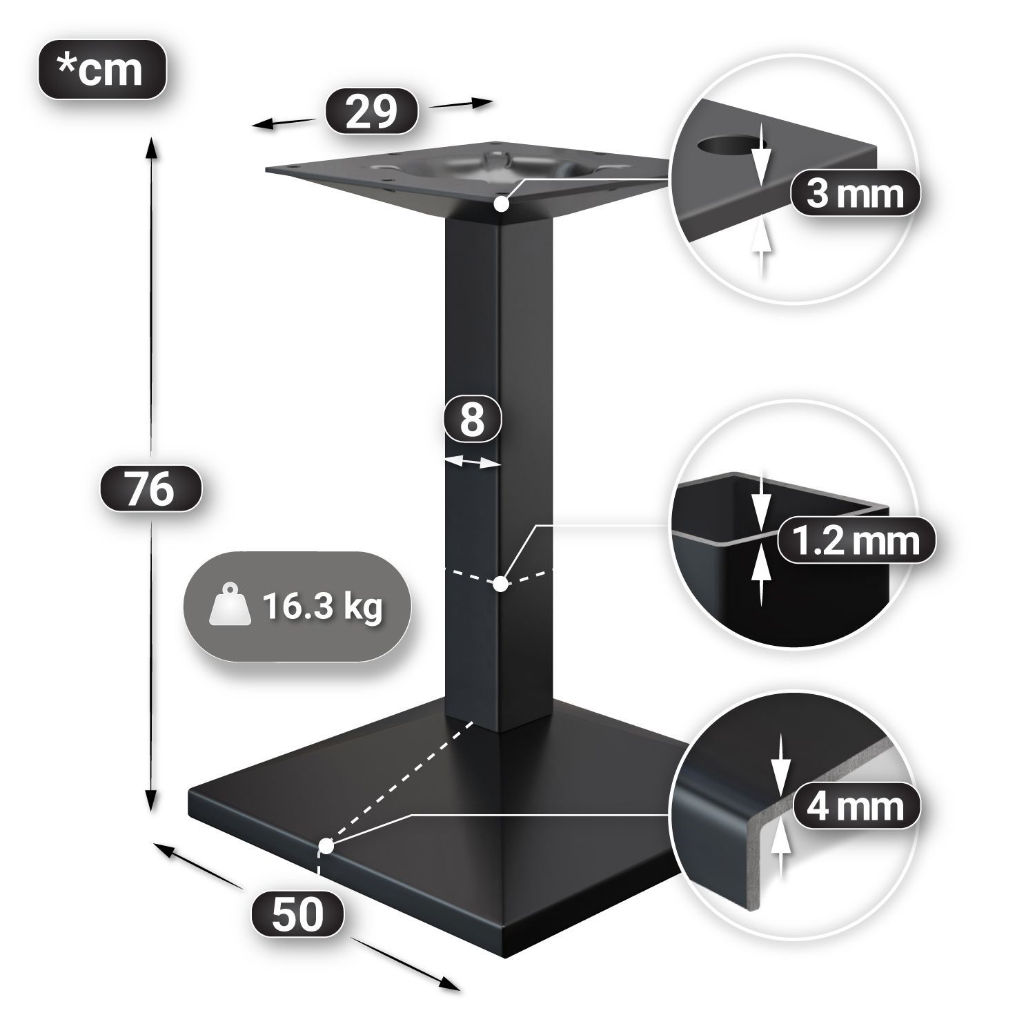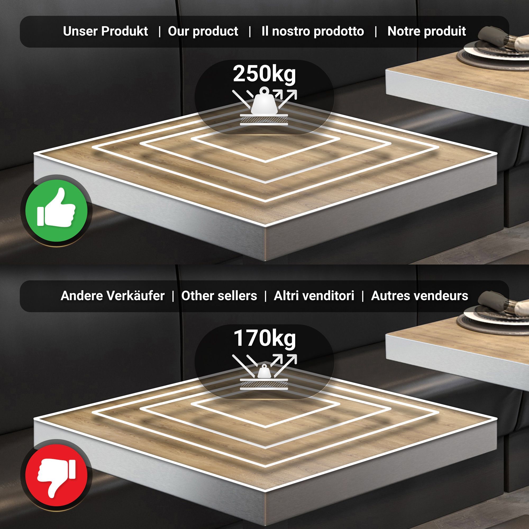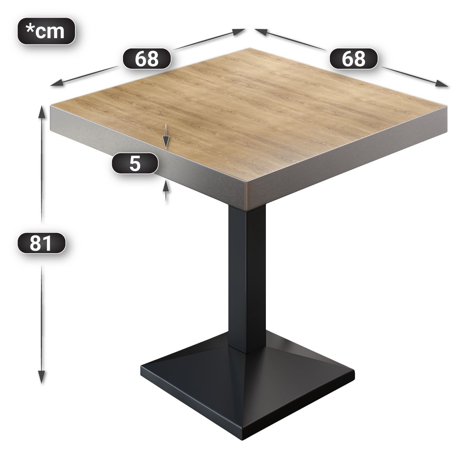 BPA | Bistro Tisch | Quadratisch | Edelstahl Rand | 70 x 70 x 81 cm | Eiche / Schwar