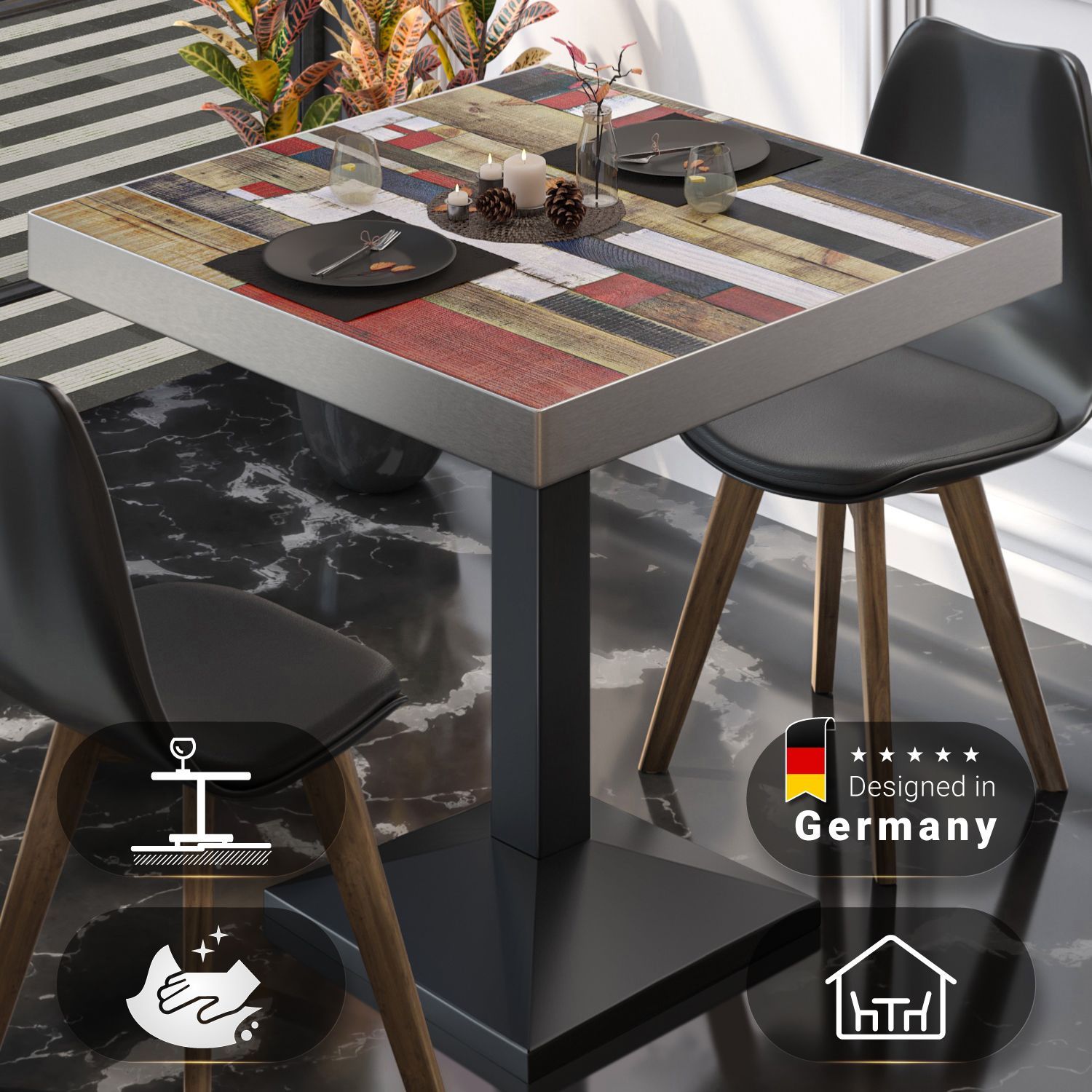 BPA | Bistro Tisch | Quadratisch | Edelstahl Rand | 70 x 70 x 81 cm | Vintage Bunt
