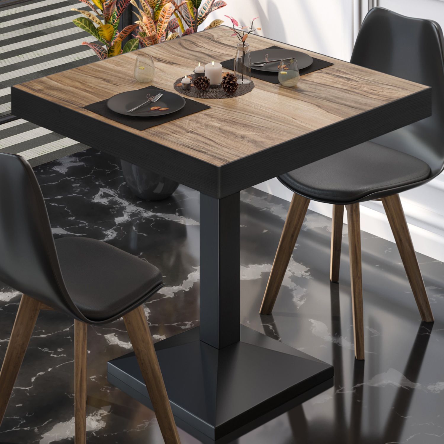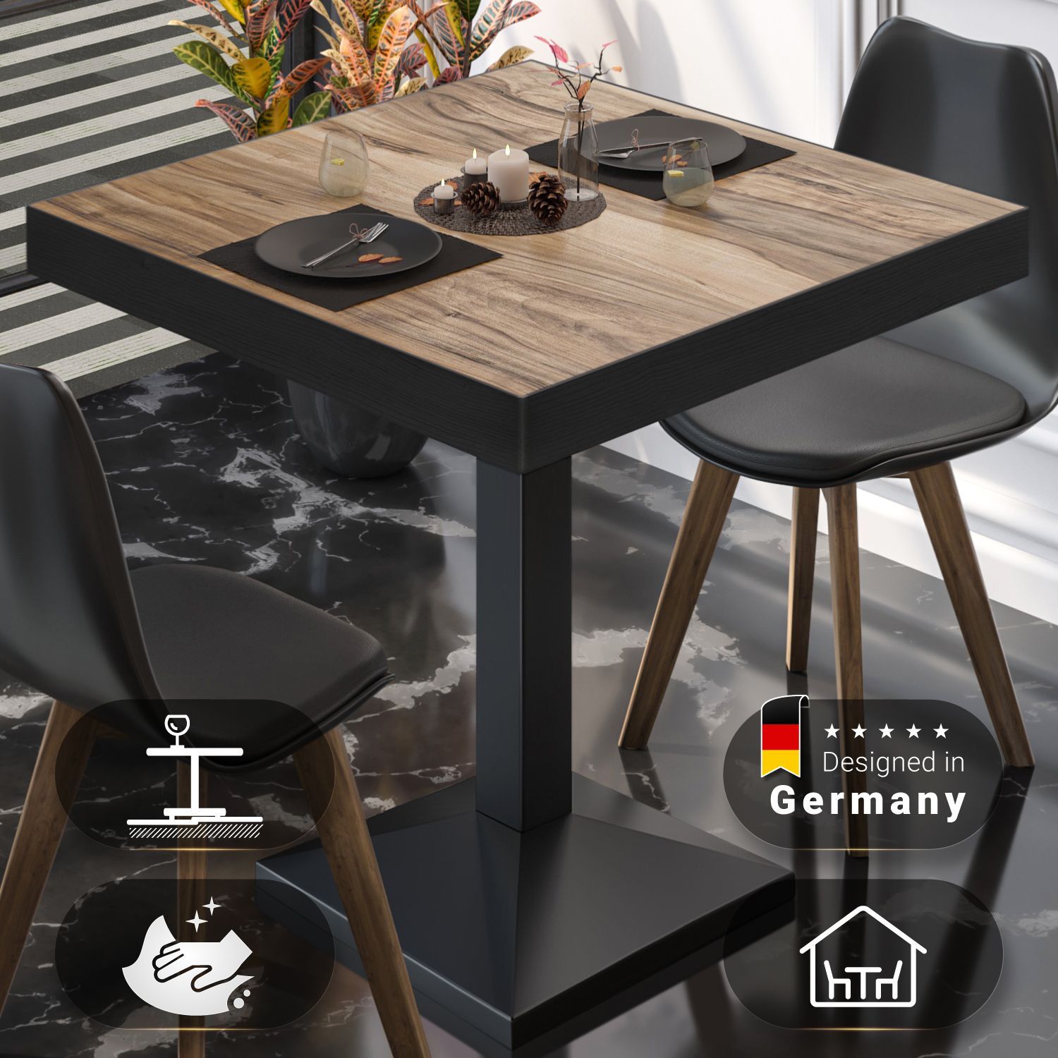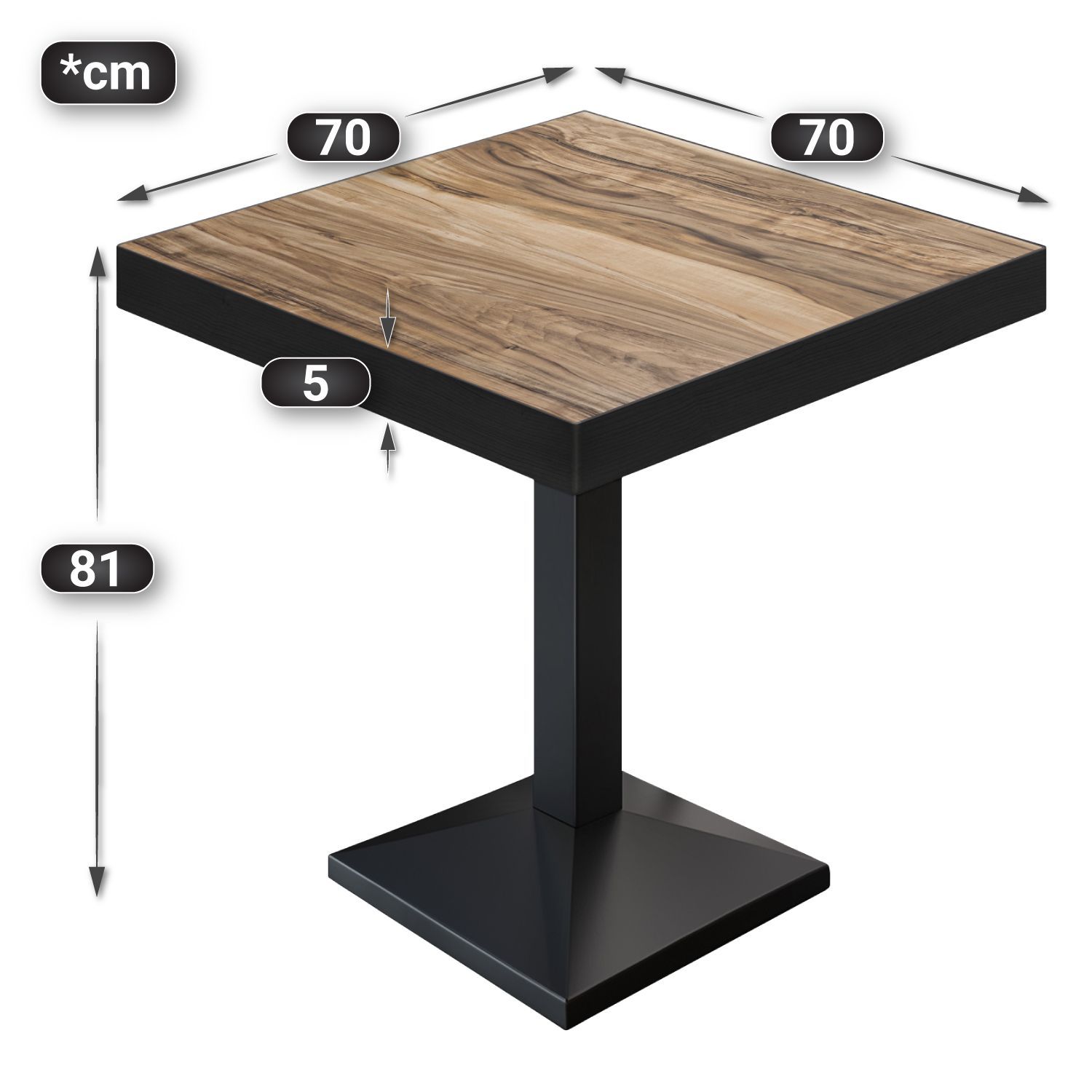 BPA | Bistro Tisch | Quadratisch | Schwarzer Rand | 80 x 80 x 81 cm | Sheesham / Sch