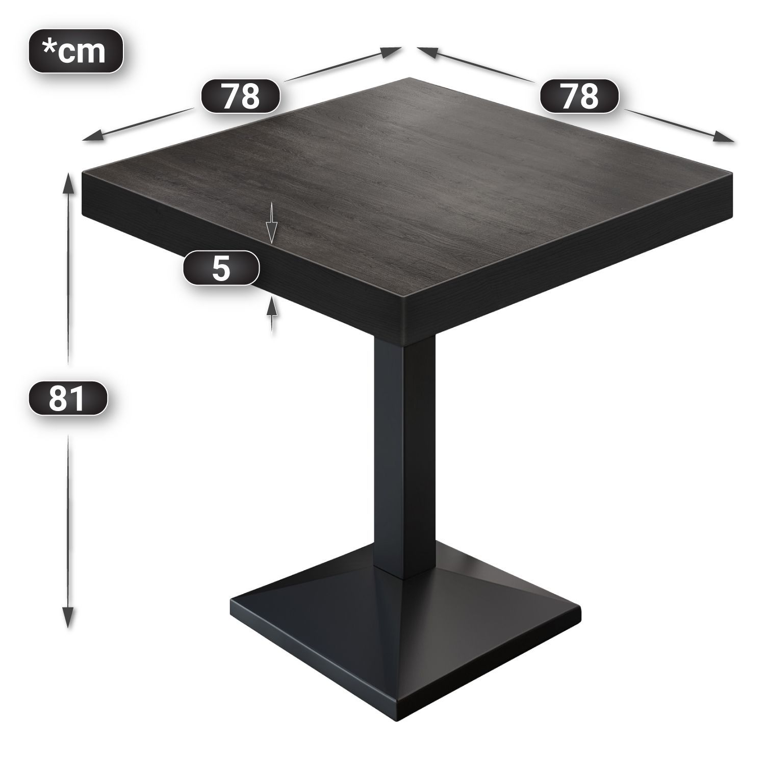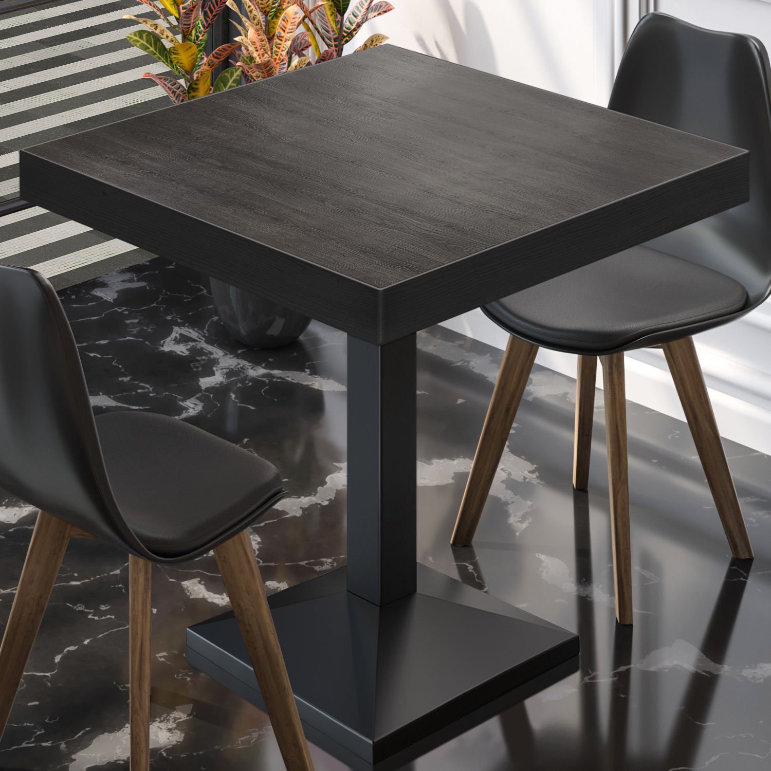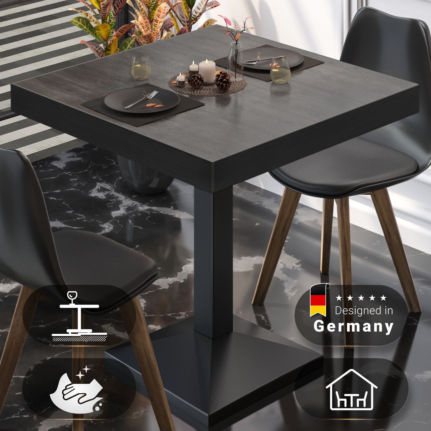 BPA | Bistro Tisch | Quadratisch | Schwarzer Rand | 80 x 80 x 81 cm | Wenge / Schwar