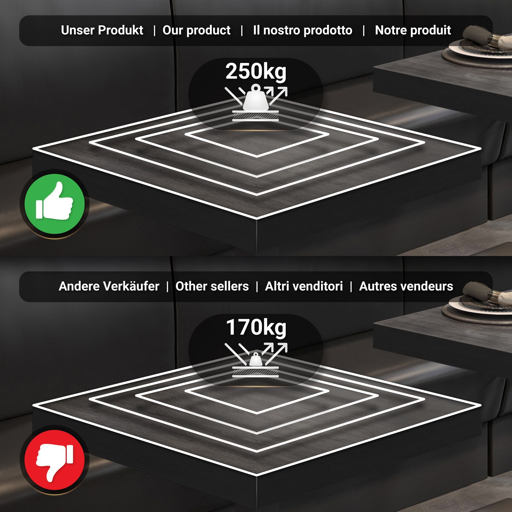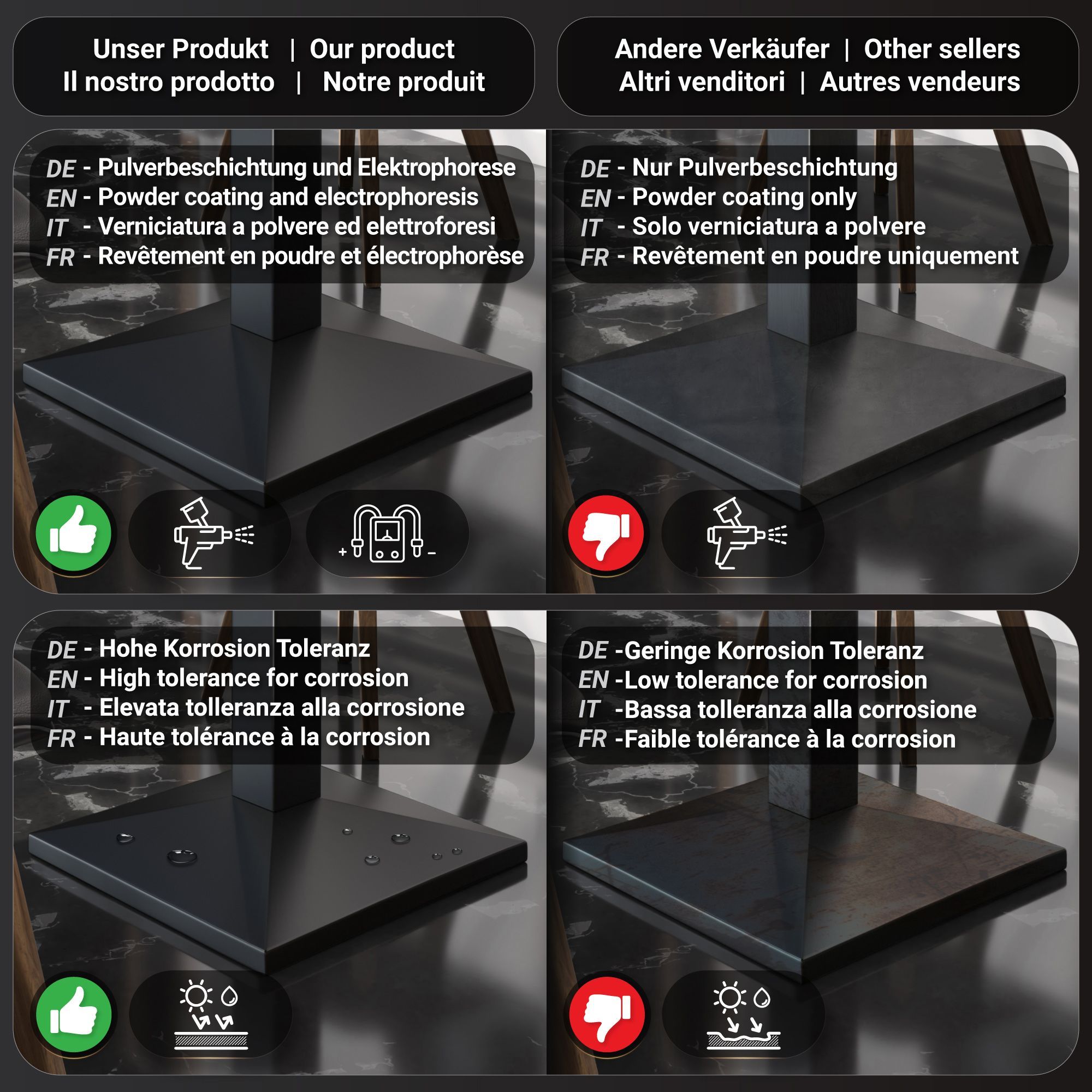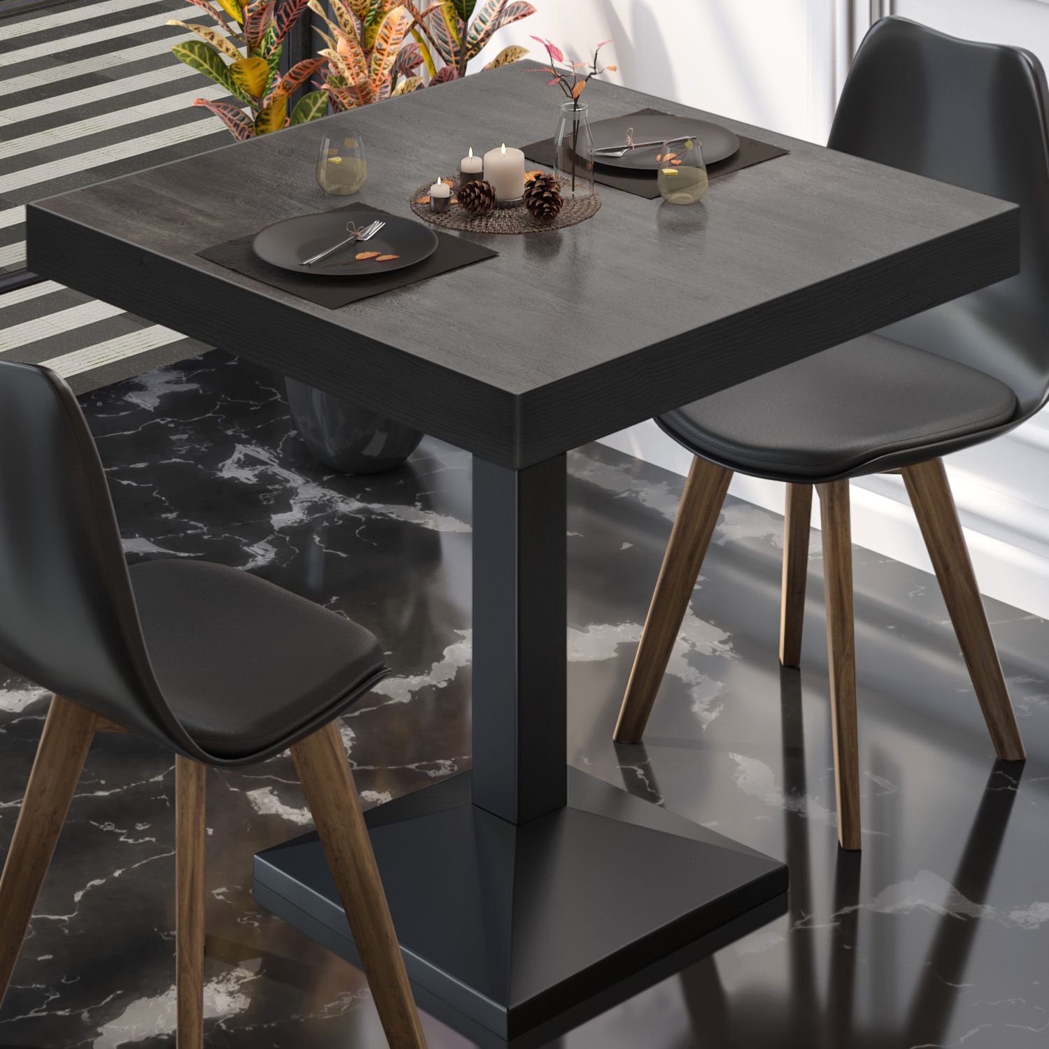 BPA | Bistro Tisch | Quadratisch | Schwarzer Rand | 80 x 80 x 81 cm | Wenge / Schwar