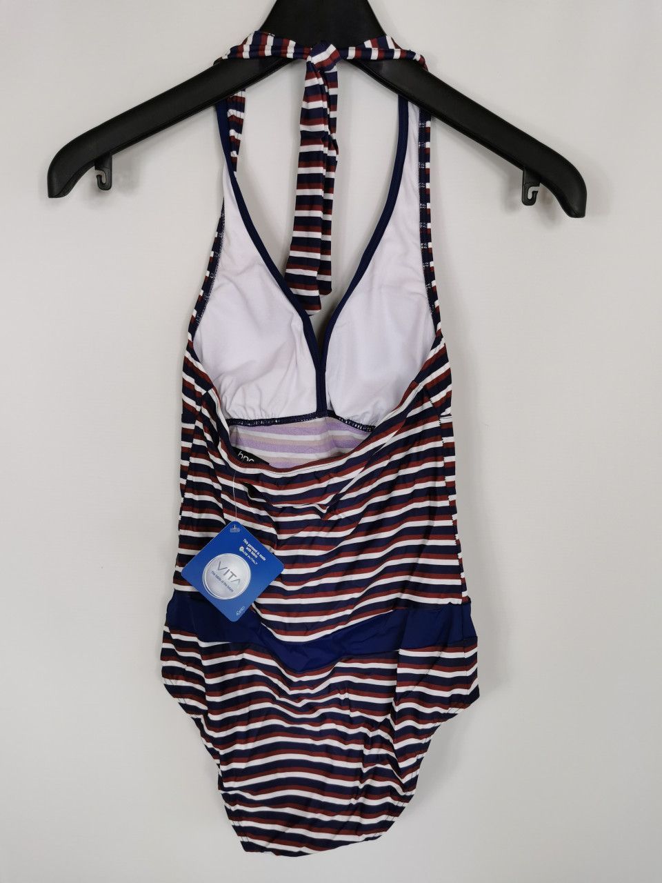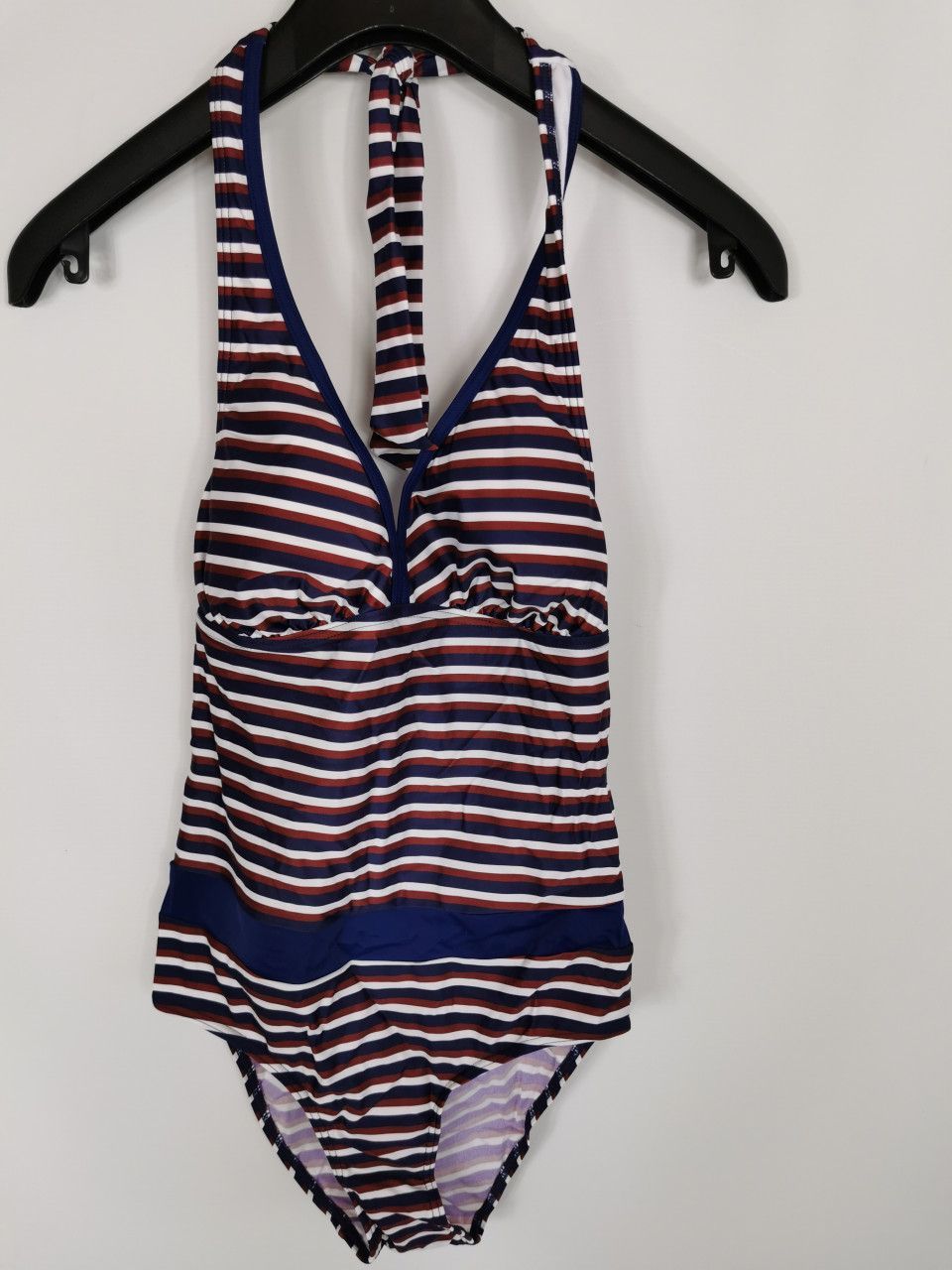 bpc bonprix Nachhaltiger Badeanzug, dunkelblau gestreift, Gr. 36 Mit herausnehmbaren Softcups. Materialzusammensetzung: Oberstoff: 78% Polyamid, 22% Elasthan Innenfutter: 100% Polyester Artikel stammt aus einer Kundenretoure - Neu oder evtl. bereits getragen