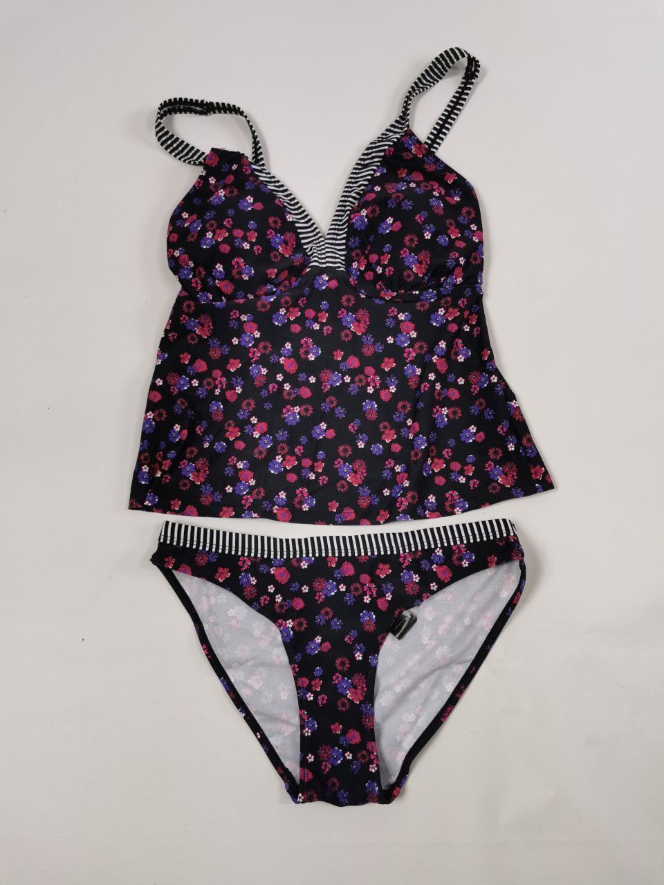 bpc bonprix Tankini mit Blumenmuster, schwarz, Gr. 38 Materialzusammensetzung: Oberstoff: 80% Polyamid, 20% Elasthan Innenfutter: 100% Polyester Artikel stammt aus einer Kundenretoure - Neu oder evtl. bereits getragen