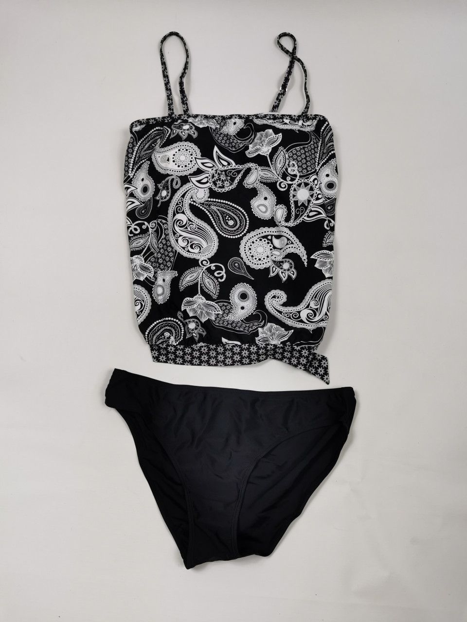 bpc selection Oversize Tankini, schwarz gemustert, Gr. 42 Mit eingearbeiteten Softcups, flexiblen Unterbrustgummi und Brustfutter. Slip in klassischer Form. Materialzusammensetzung: Oberstoff: 80% Polyamid, 20% Elasthan Innenfutter: 100% Polyester Artikel stammt aus einer Kundenretoure - Neu oder ev