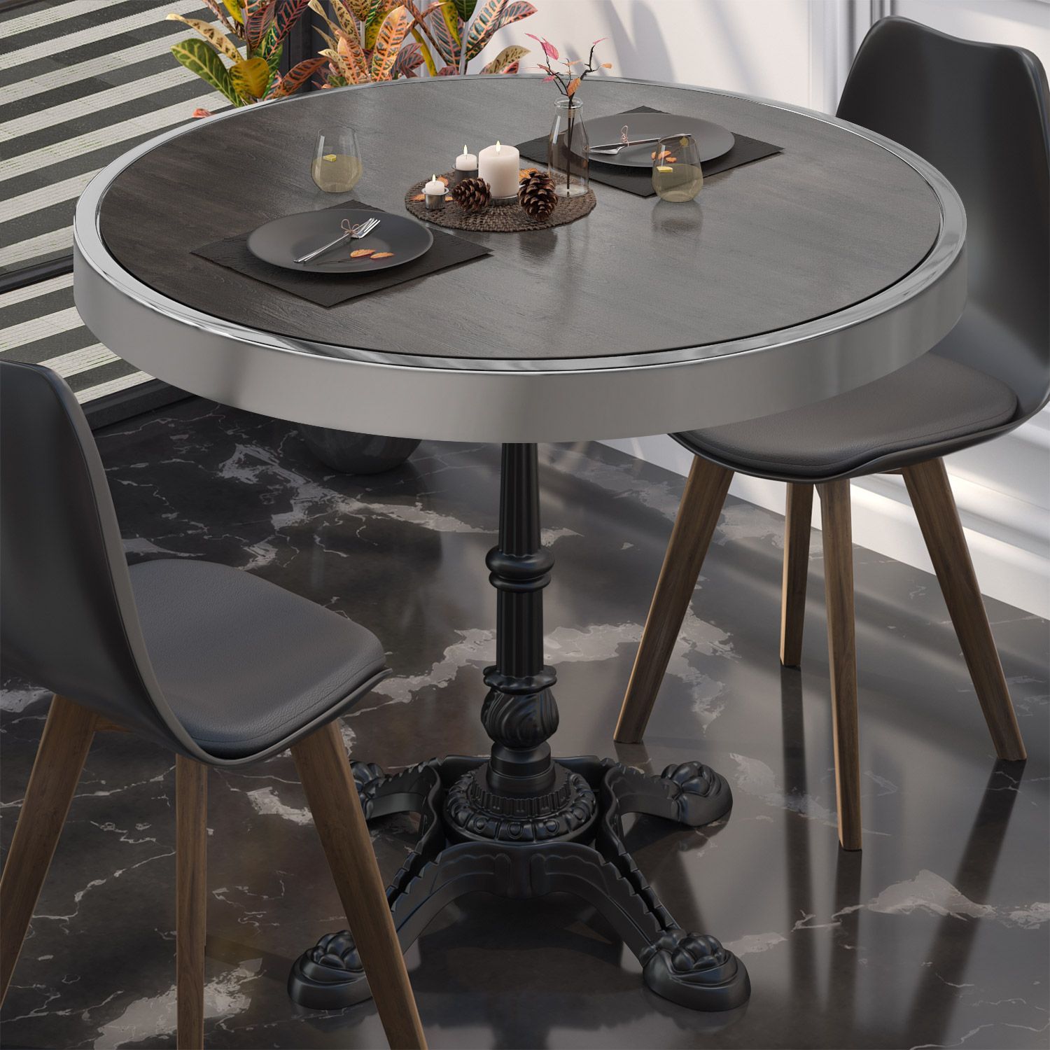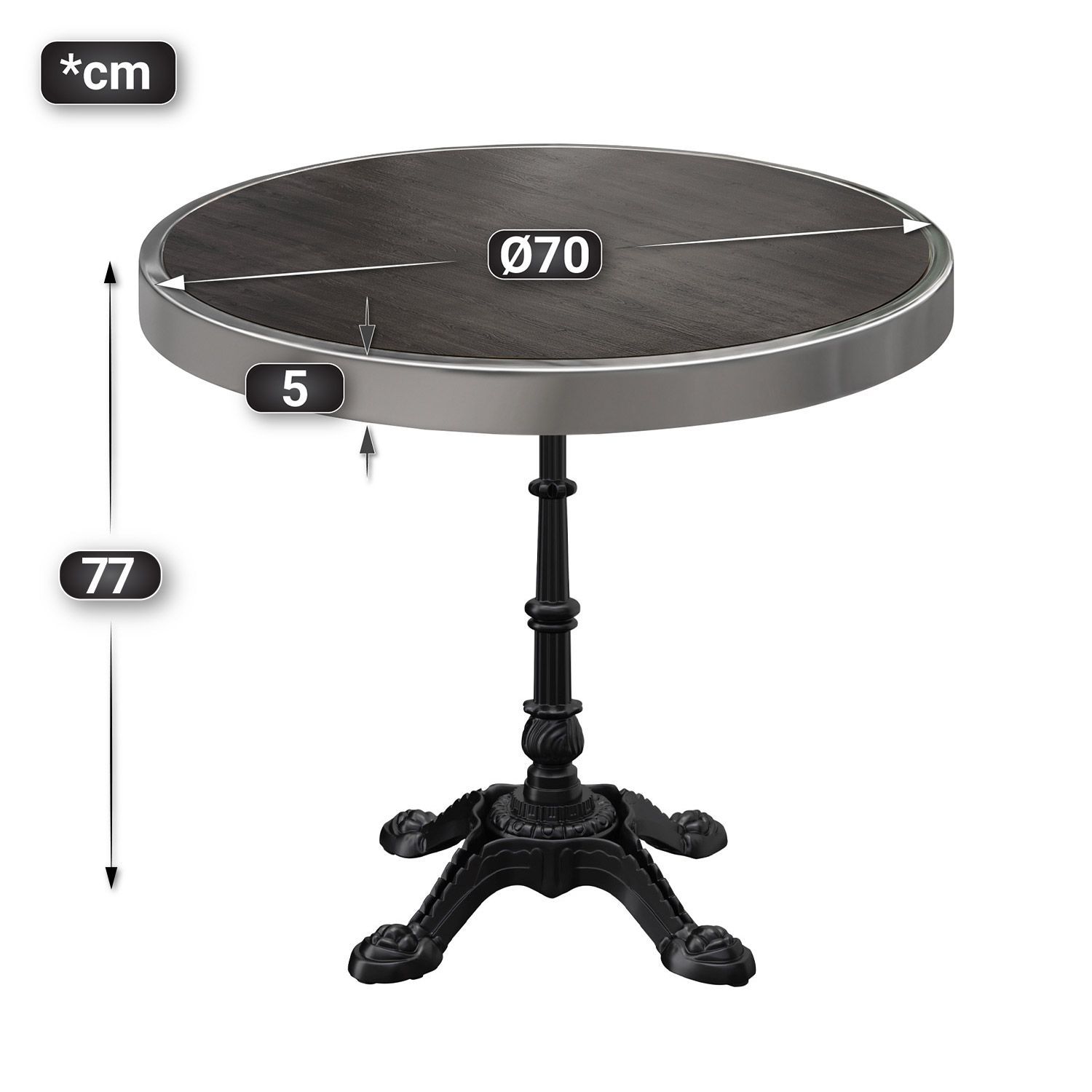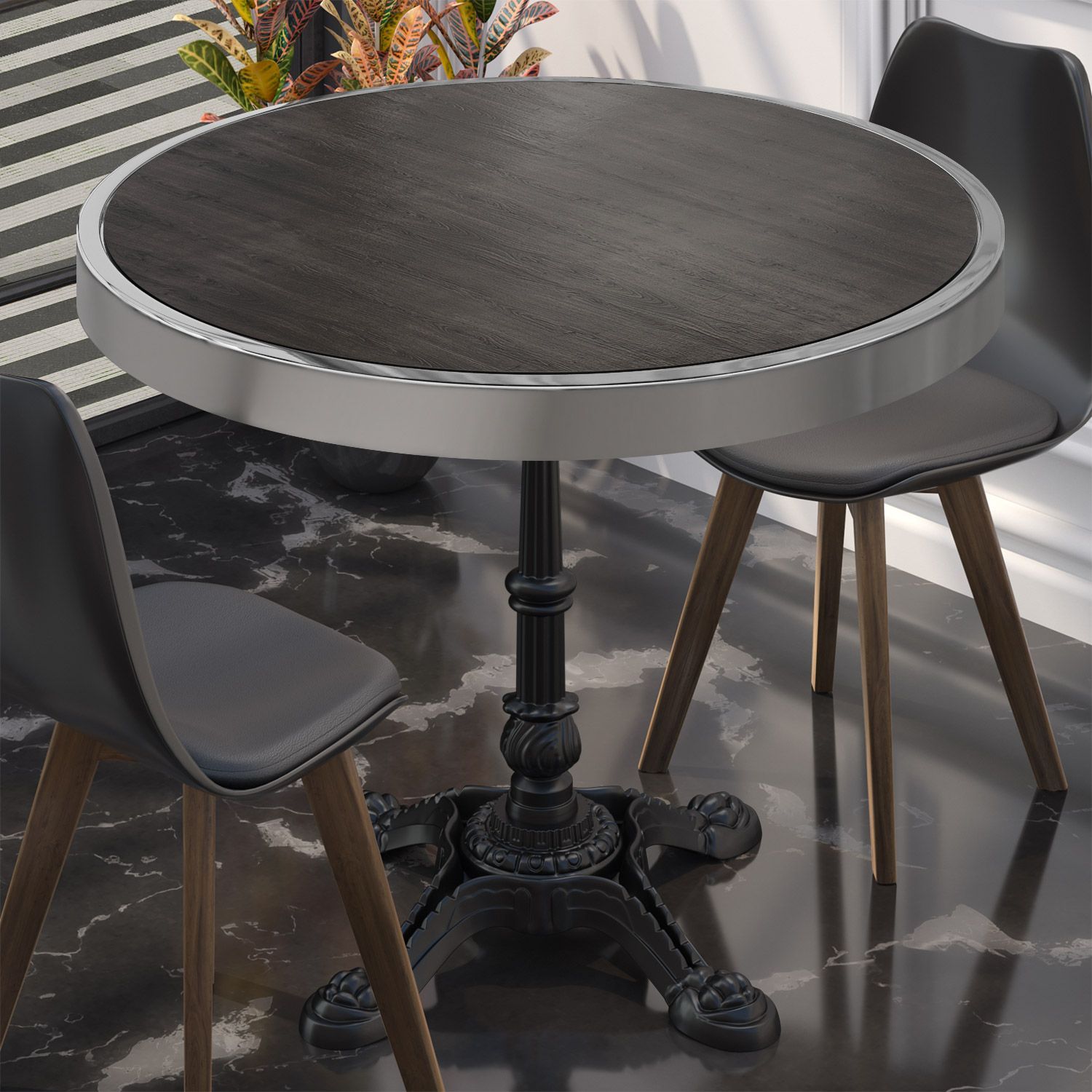 BPR | Bistro Tisch | Ø 70 x 77 cm | Rund | Chrom Rahmen | Wenge / Schwarz | Bistroti