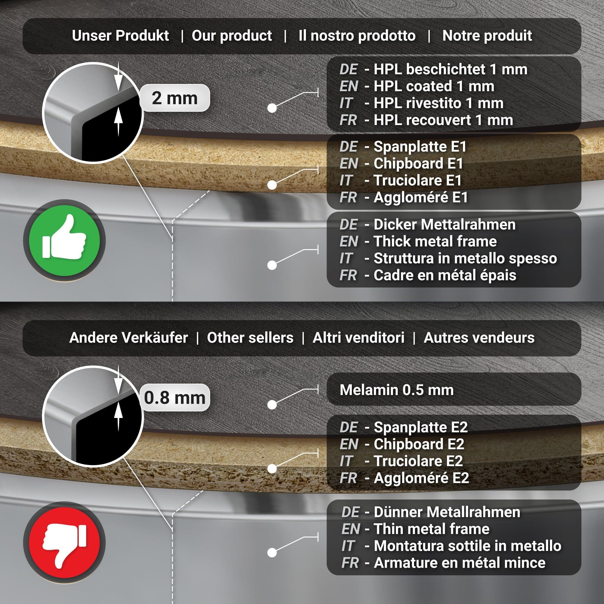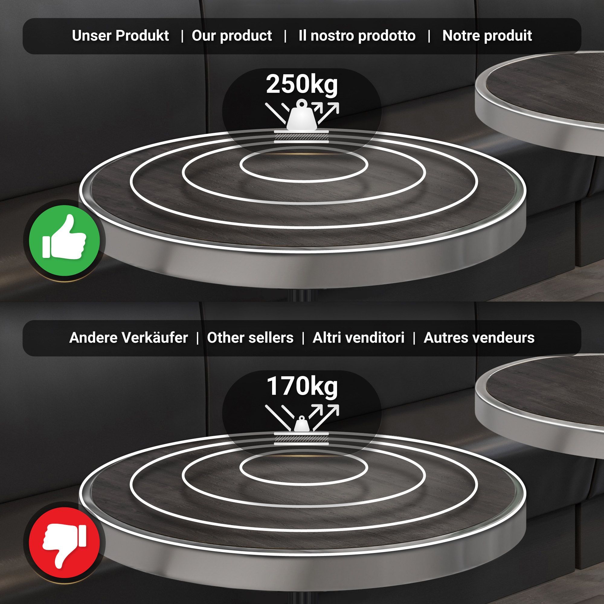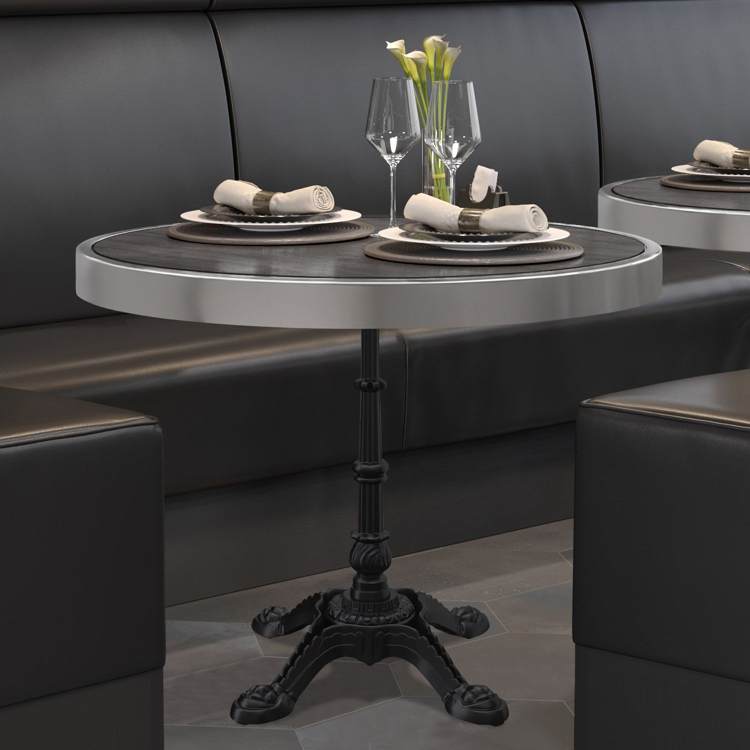 BPR | Bistro Tisch | Ø 70 x 77 cm | Rund | Chrom Rahmen | Wenge / Schwarz | Bistroti