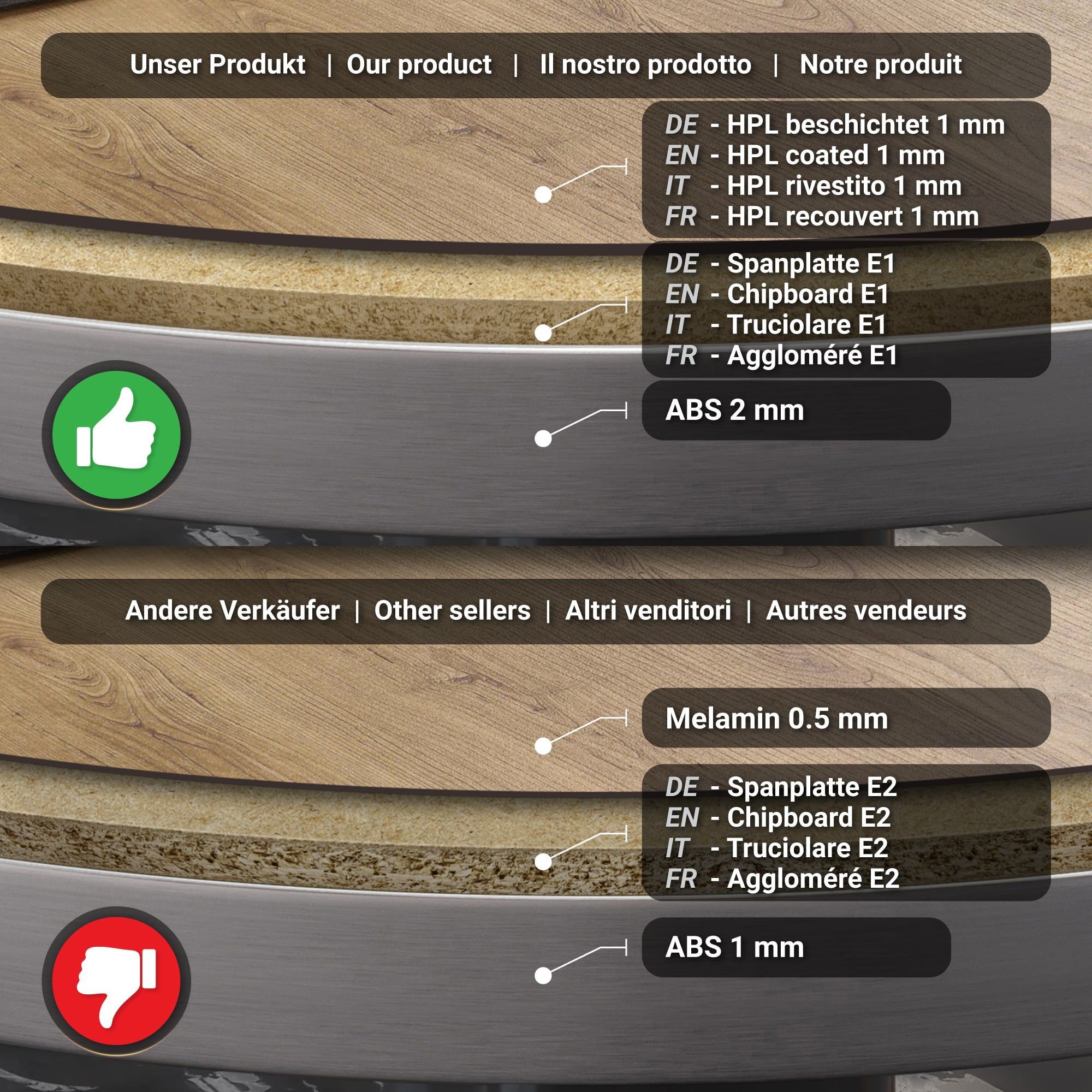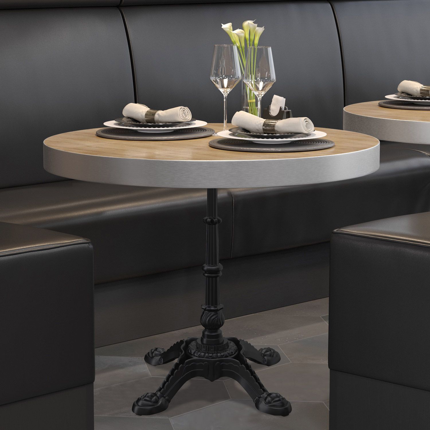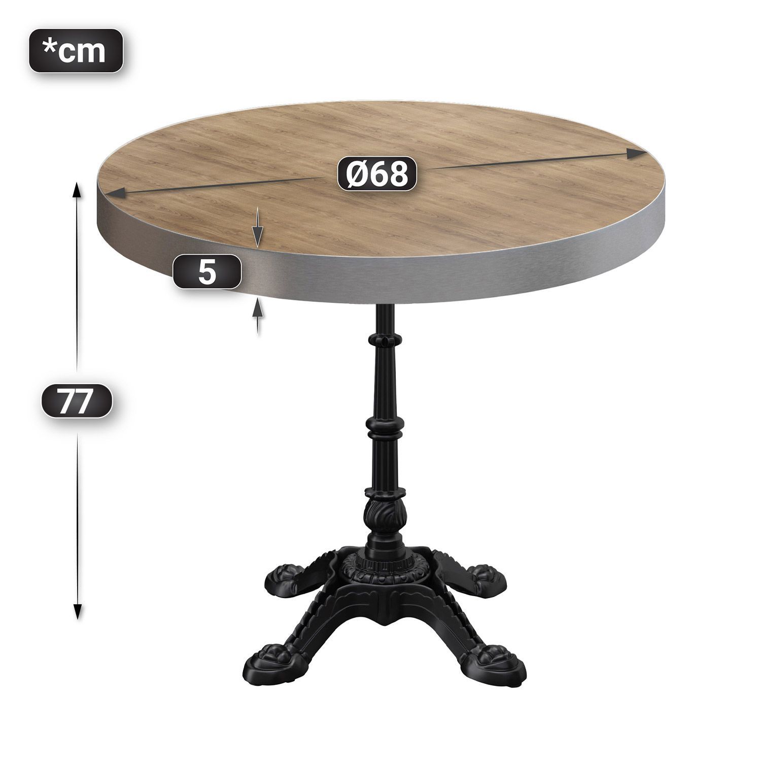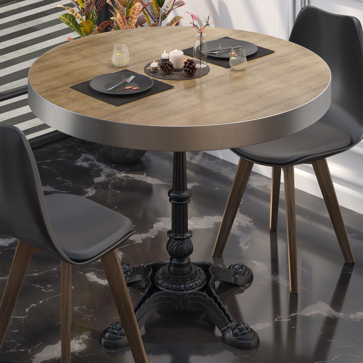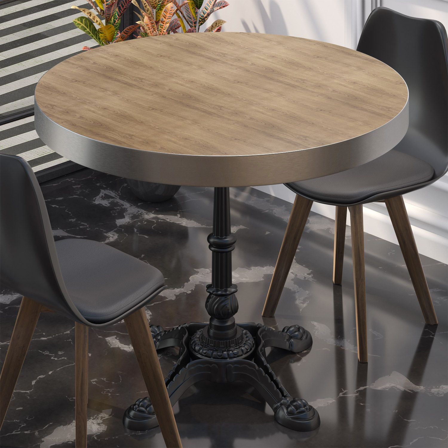 BPR | Bistro Tisch | Ø 70 x 77 cm | Rund | Edelstahl Rand | Eiche / Schwarz | Bistro
