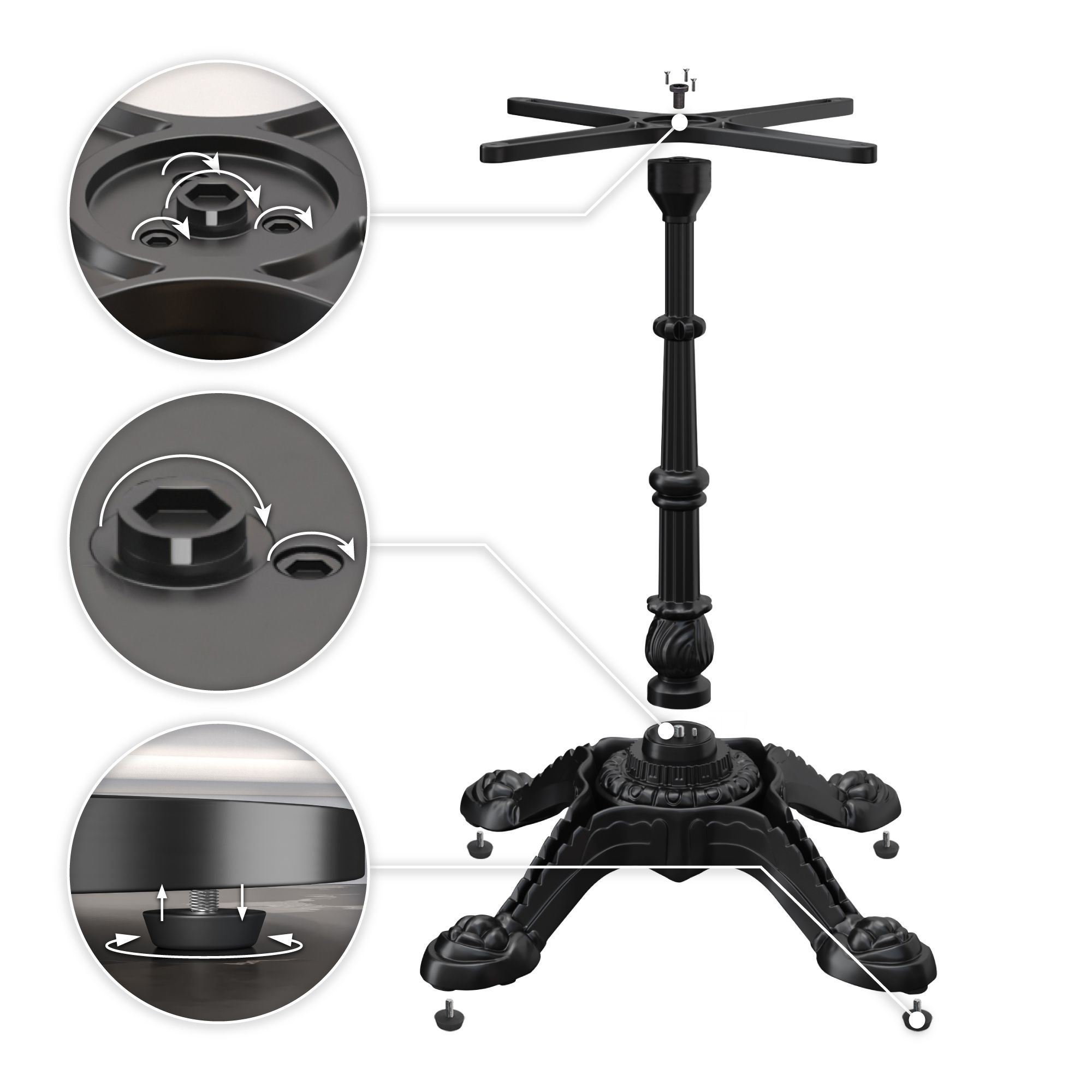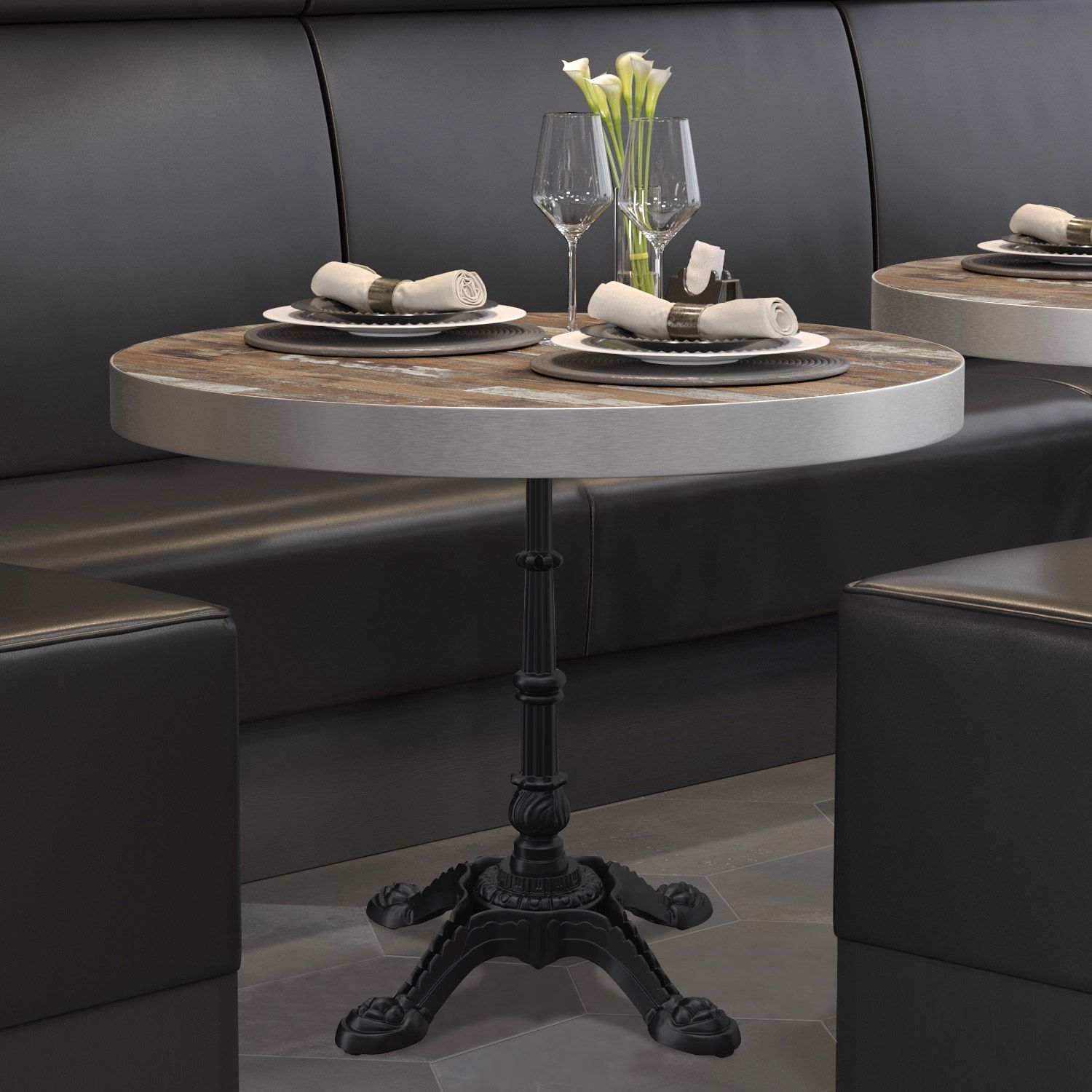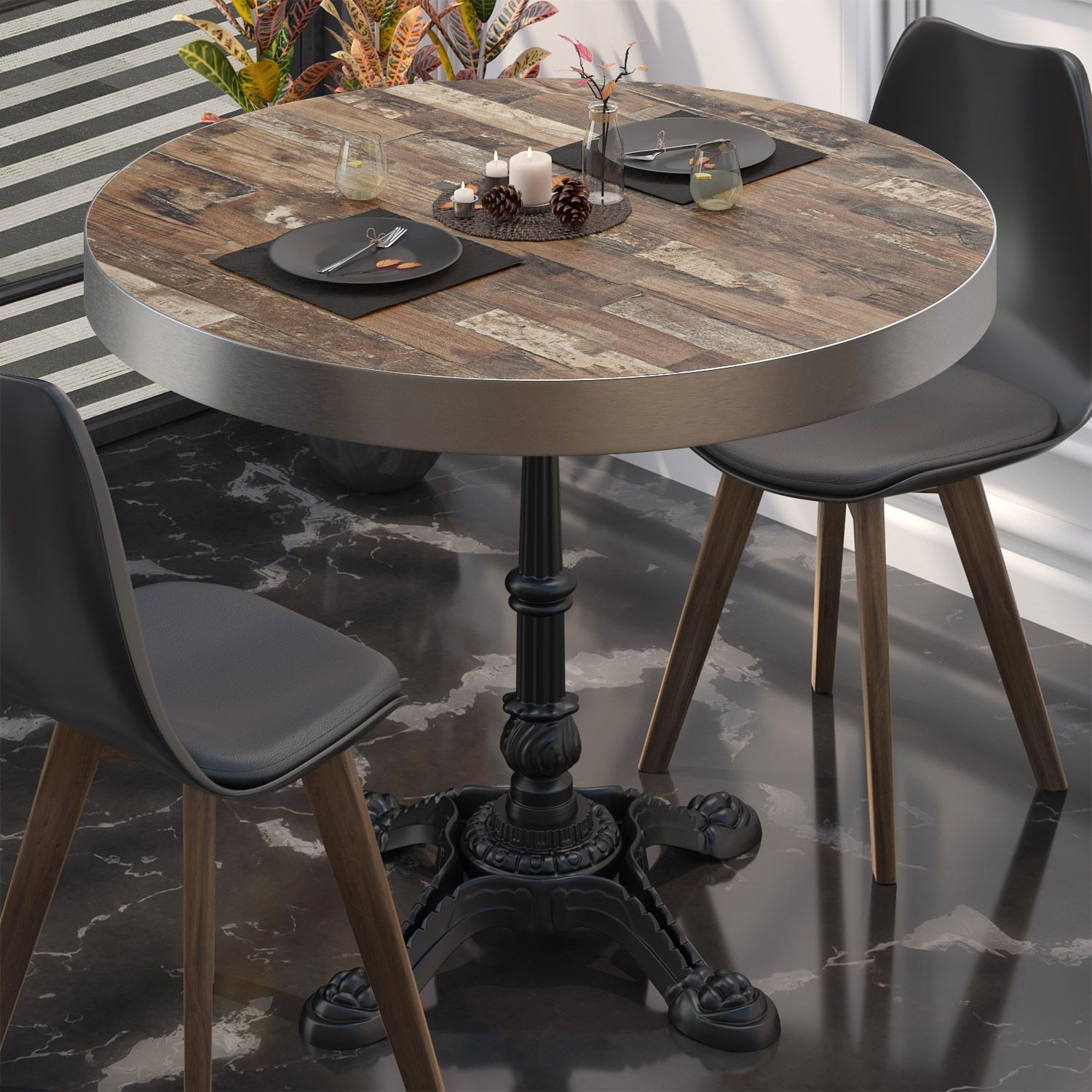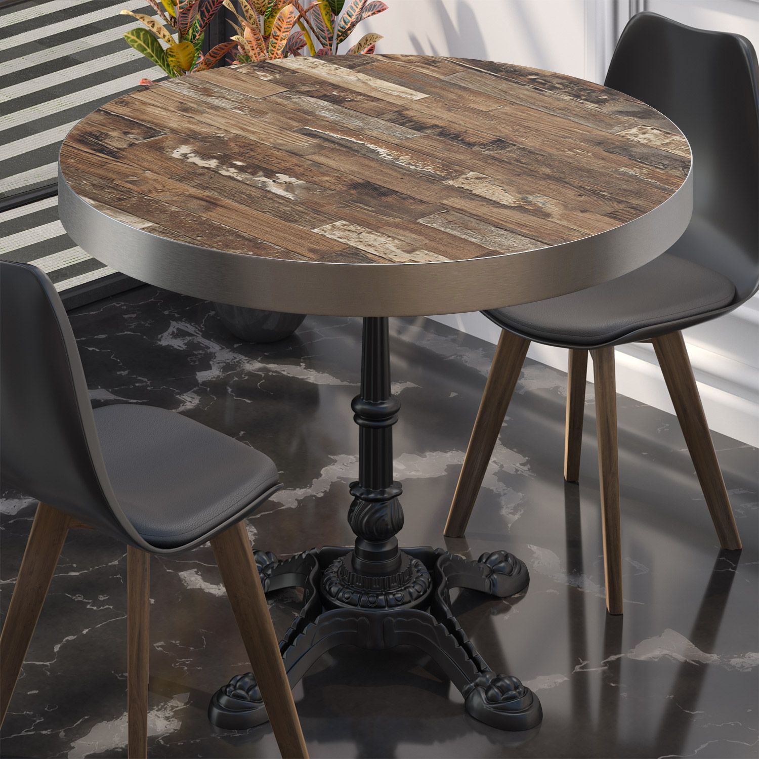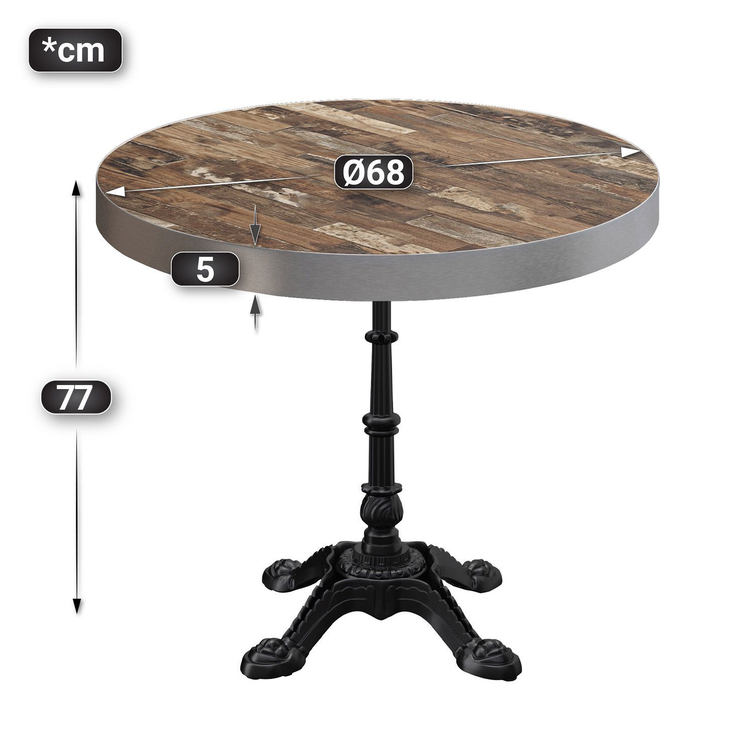 BPR | Bistro Tisch | Ø 70 x 77 cm | Rund | Edelstahl Rand | Vintage Old / Schwarz |