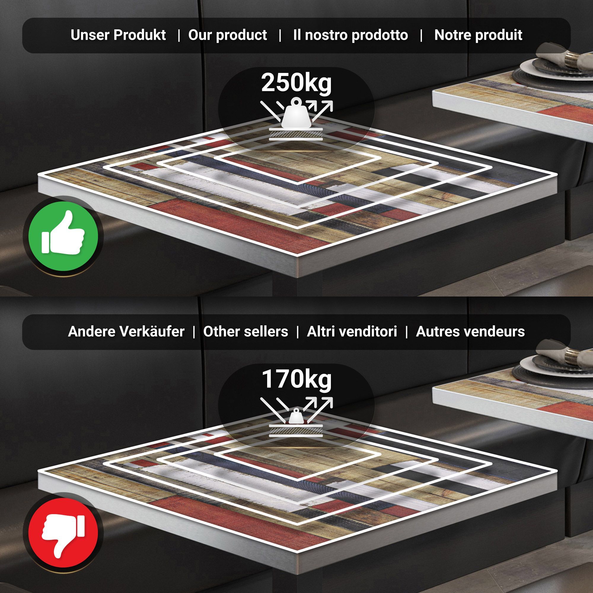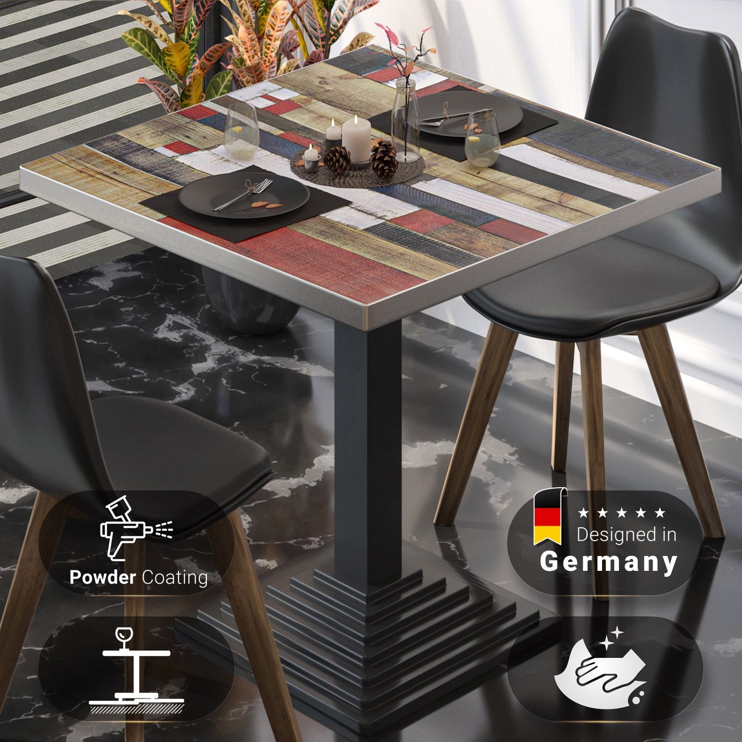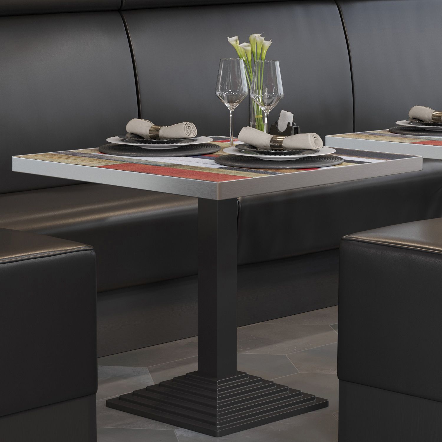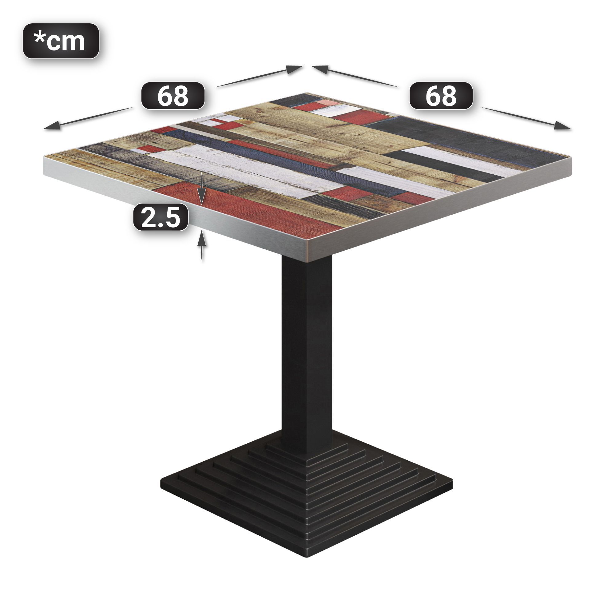 BPY | Bistro Tisch | 70 x 70 x 78,5 cm | Quadratisch | Edelstahl Rand | Vintage Bunt