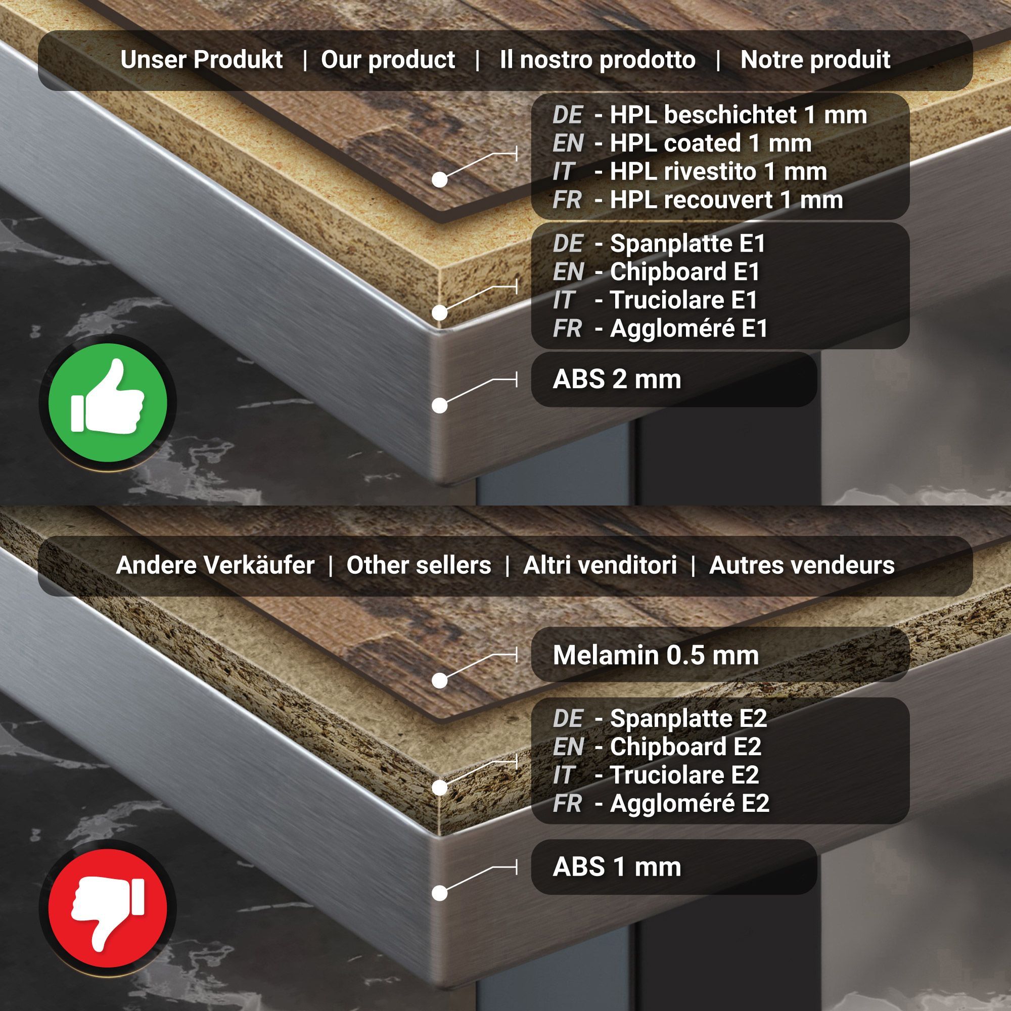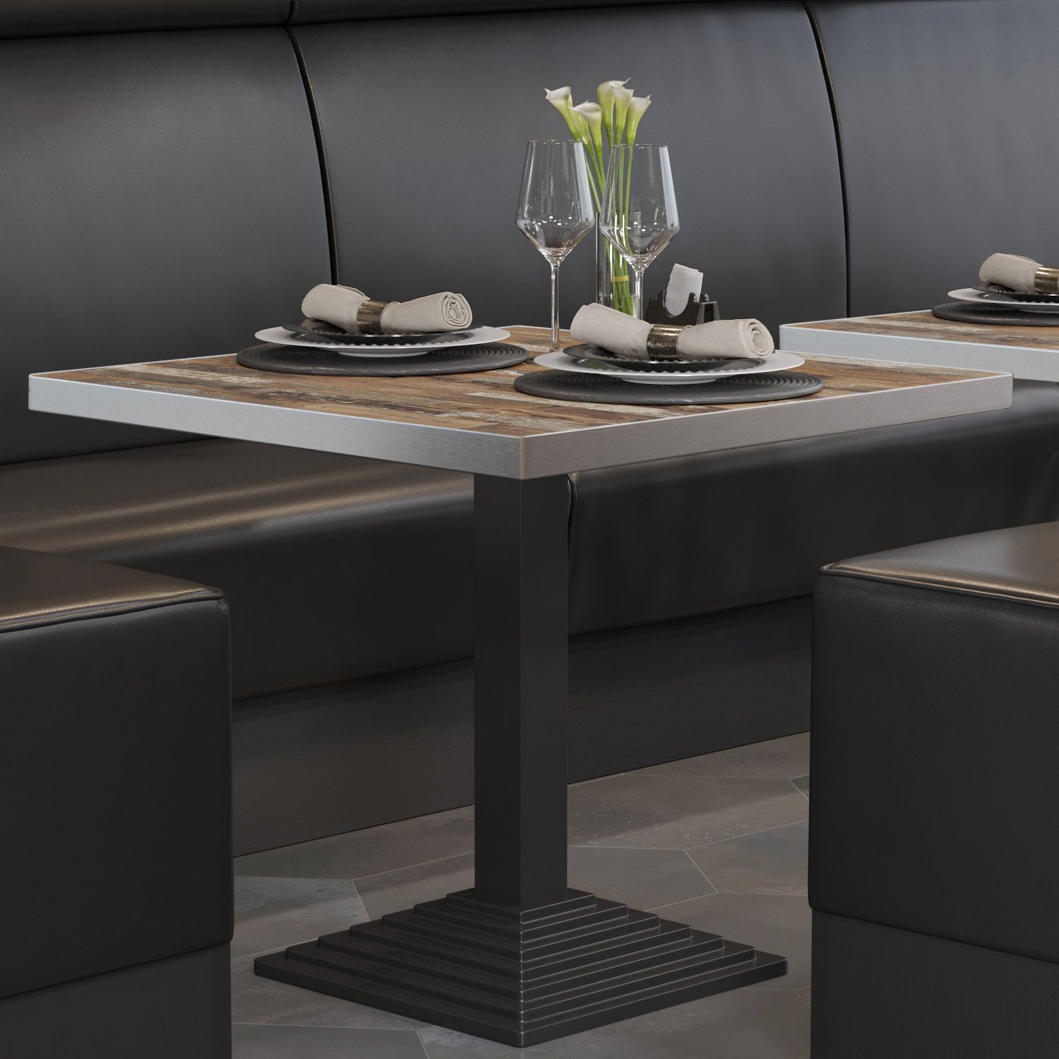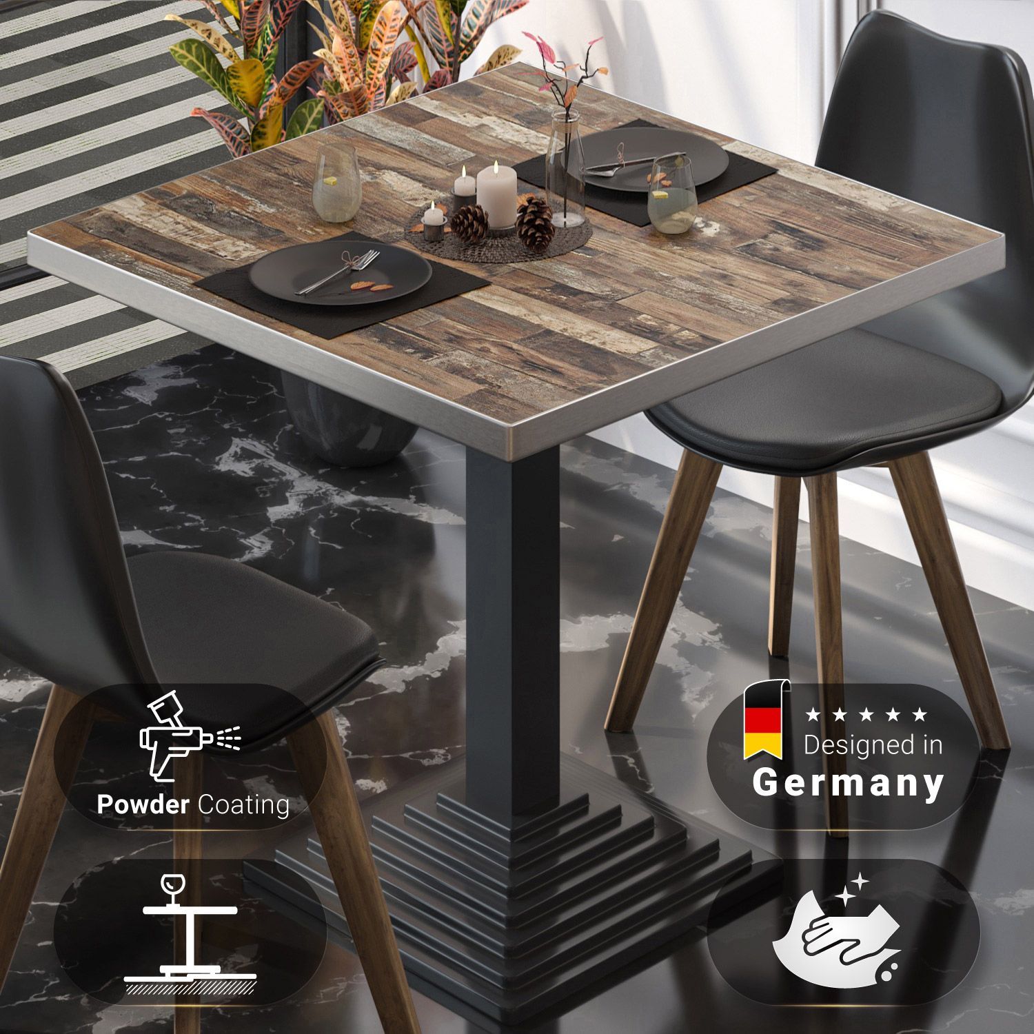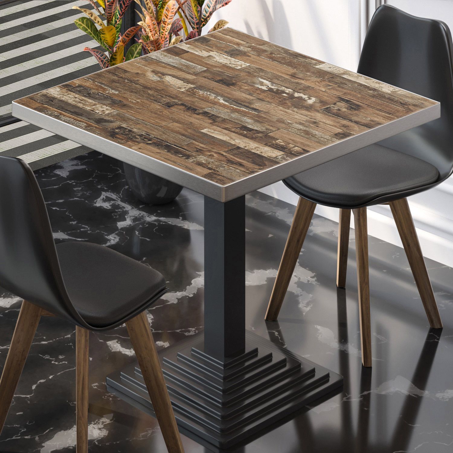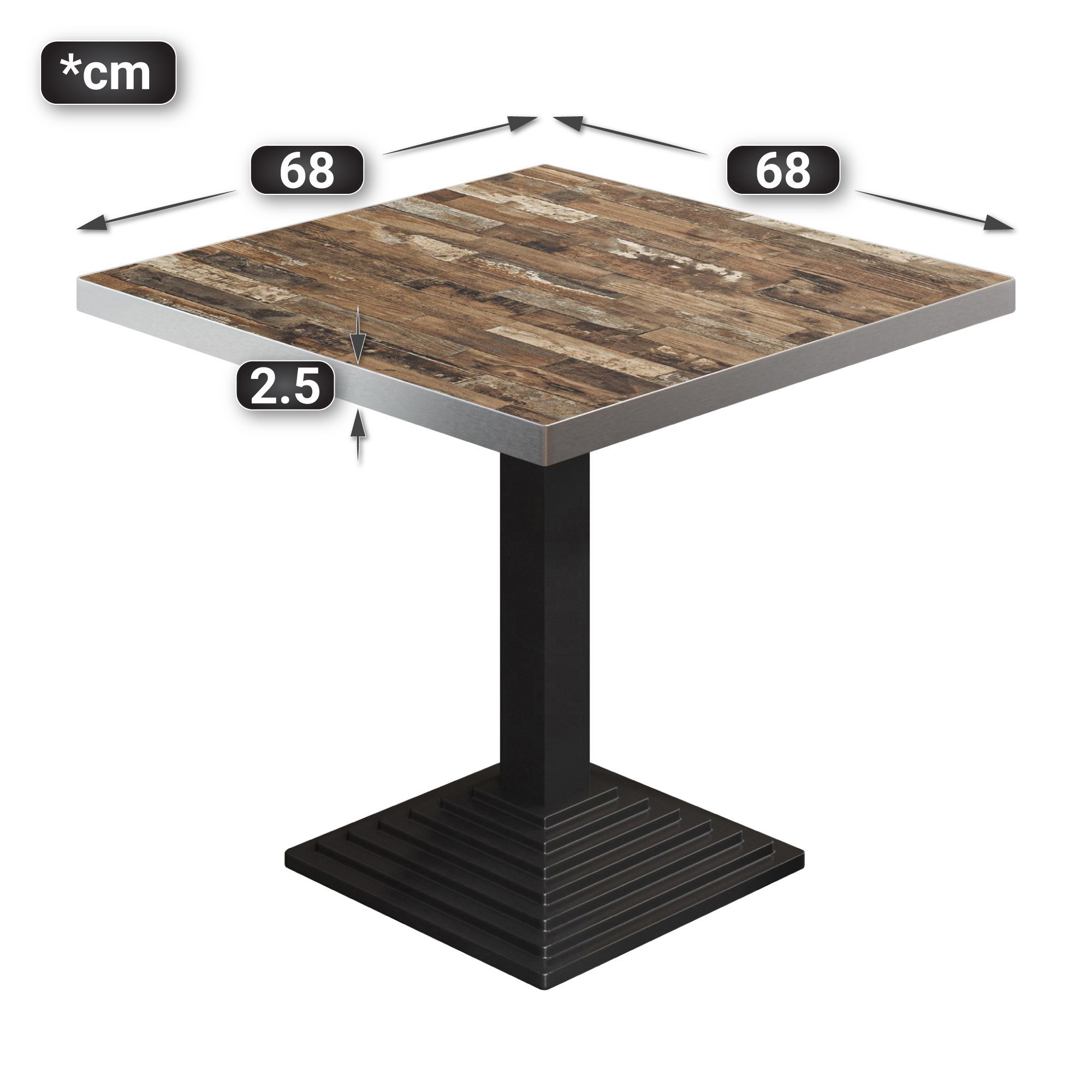 BPY | Bistro Tisch | 70 x 70 x 78,5 cm | Quadratisch | Edelstahl Rand | Vintage Old