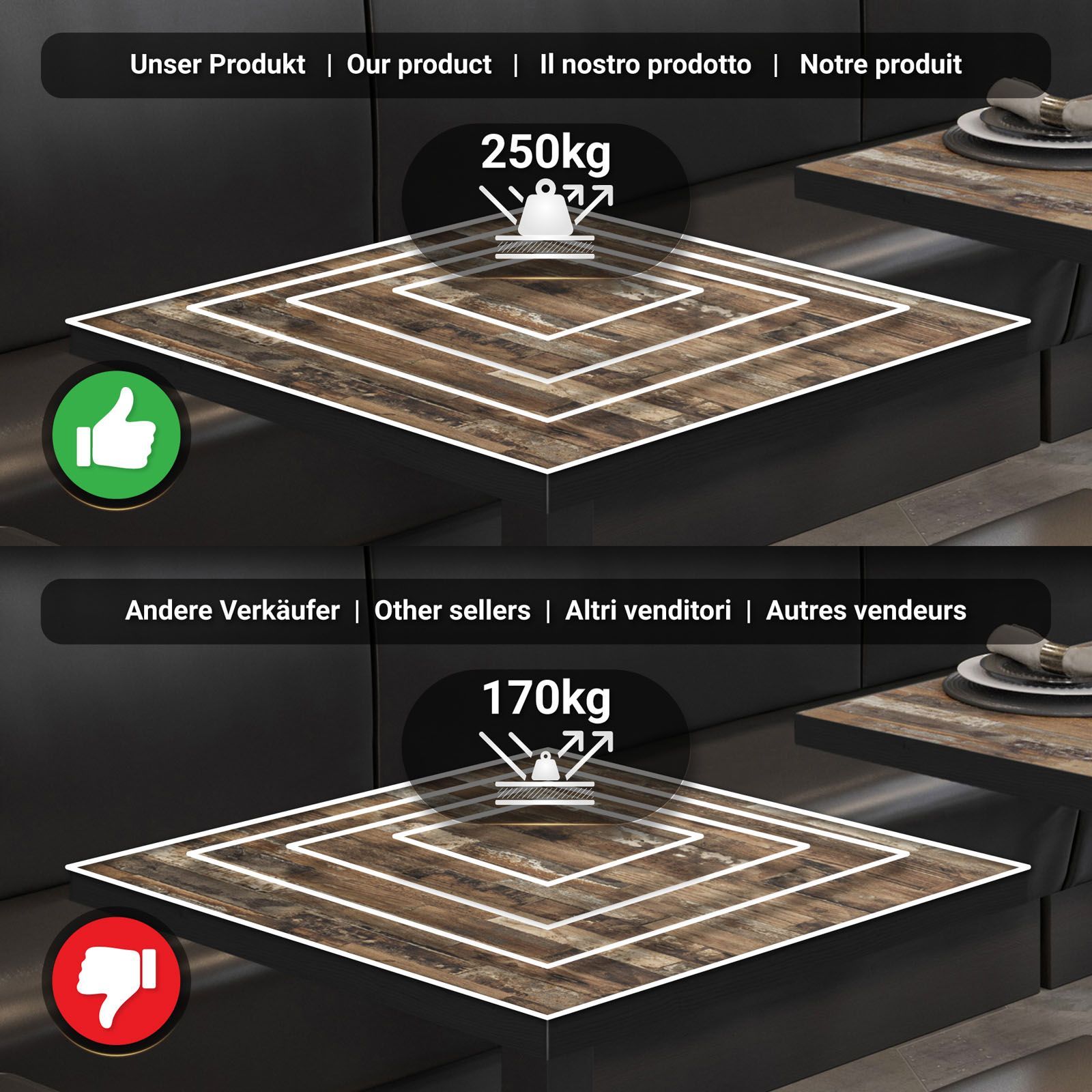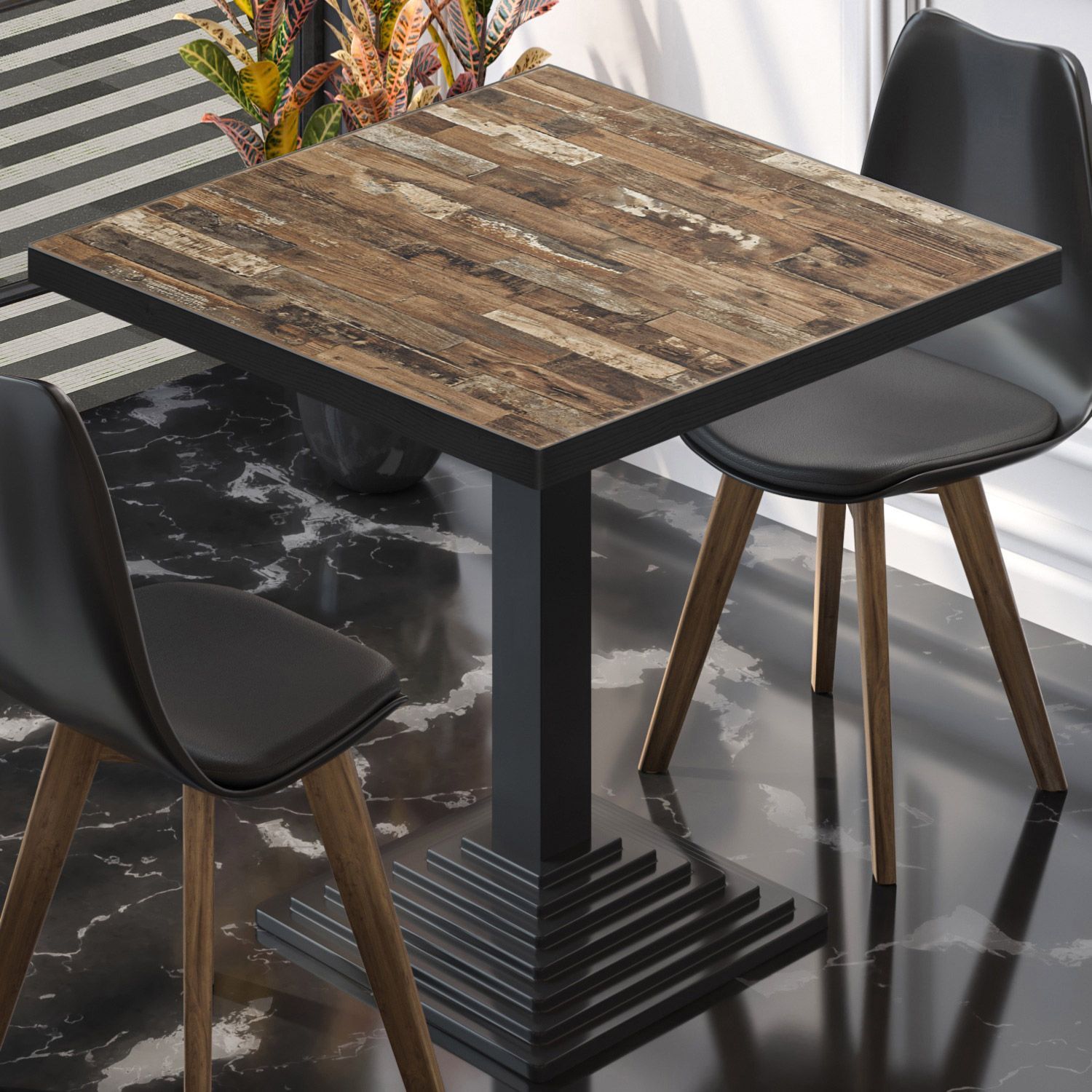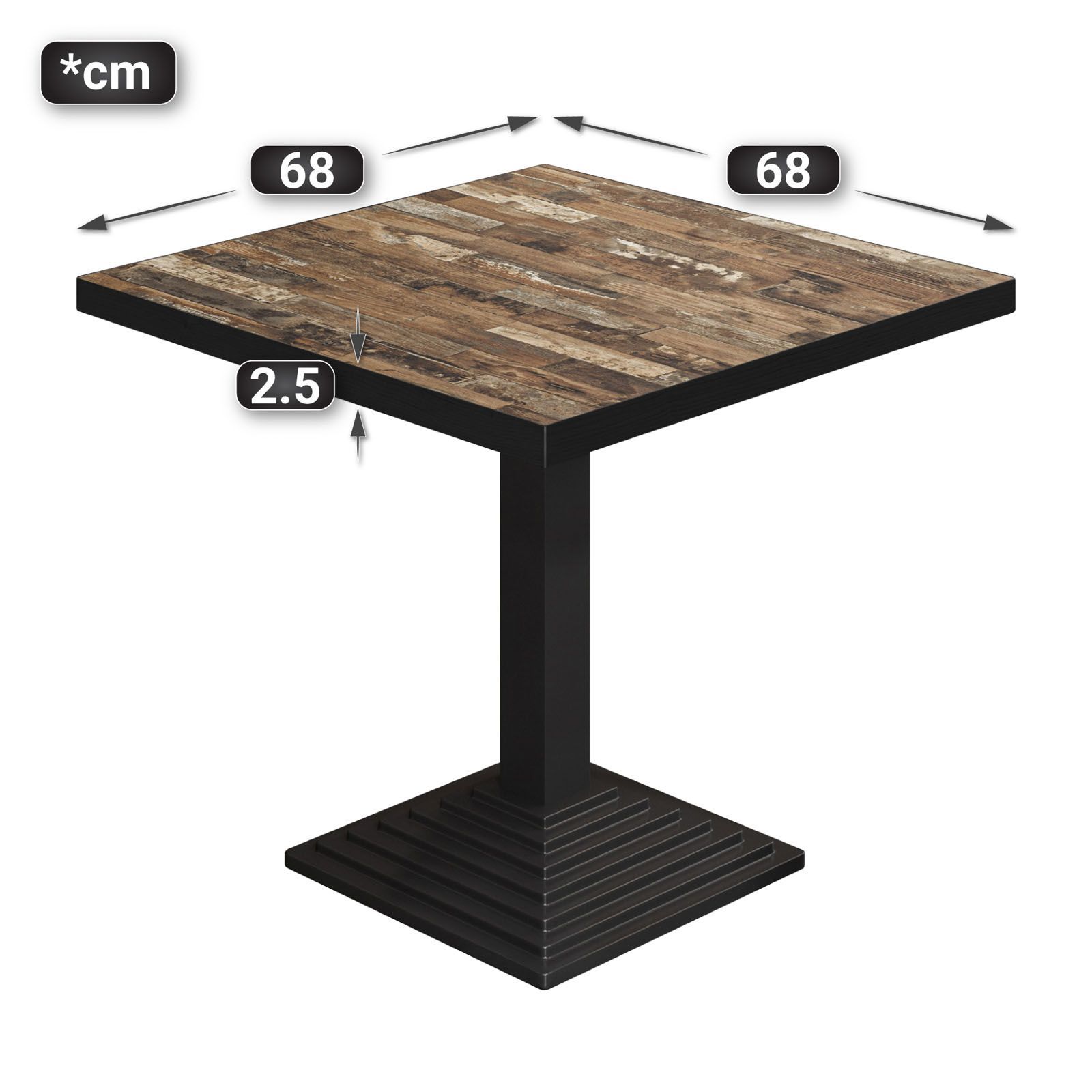 BPY | Bistro Tisch | 70 x 70 x 78,5 cm | Quadratisch | Schwarzer Rand | Vintage Old