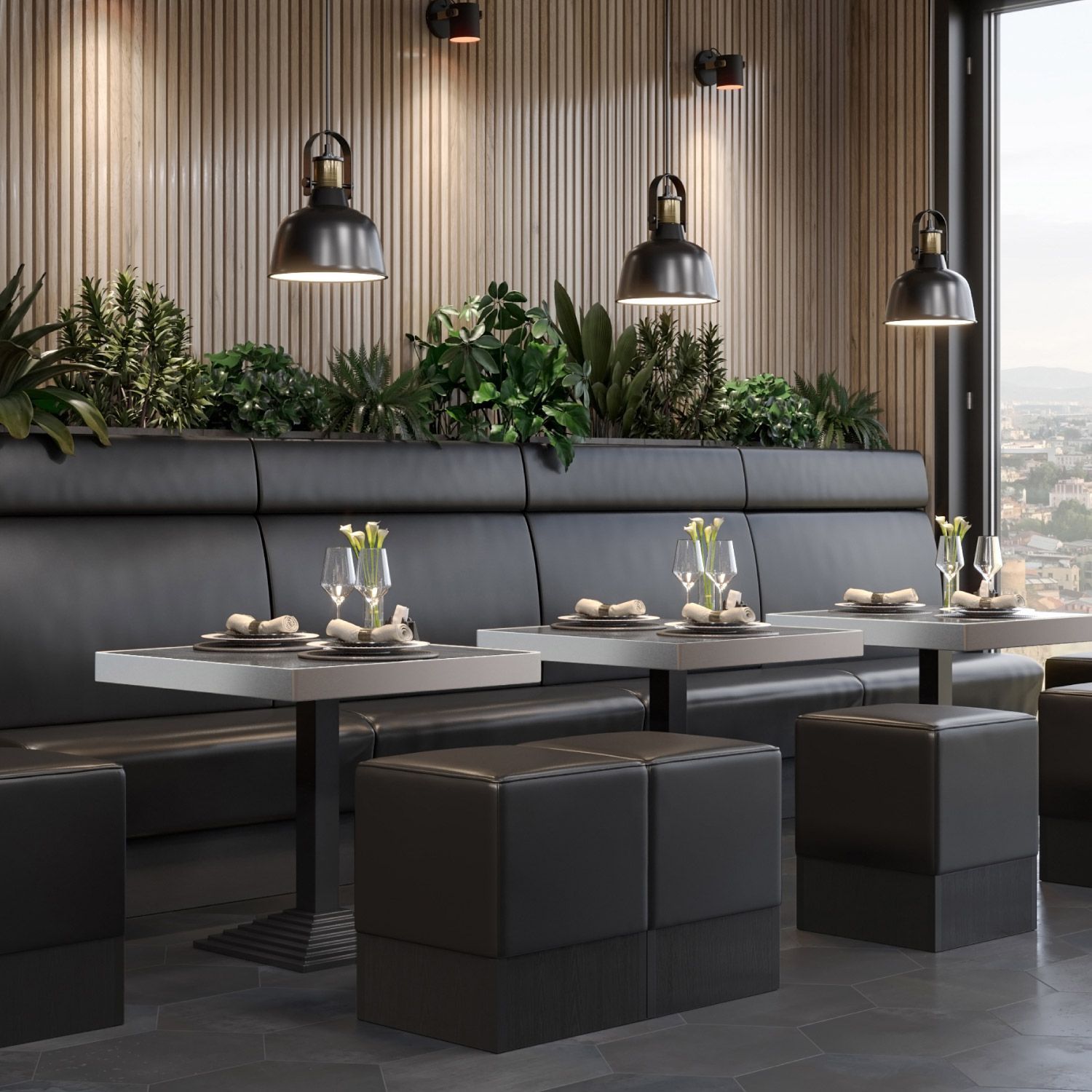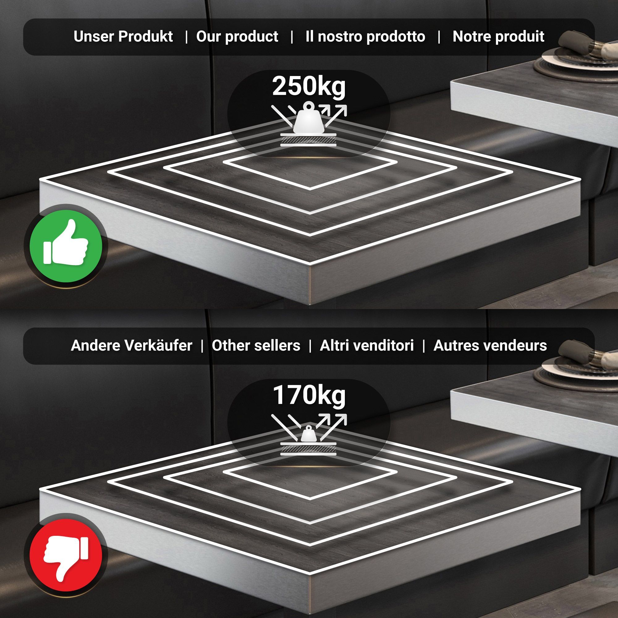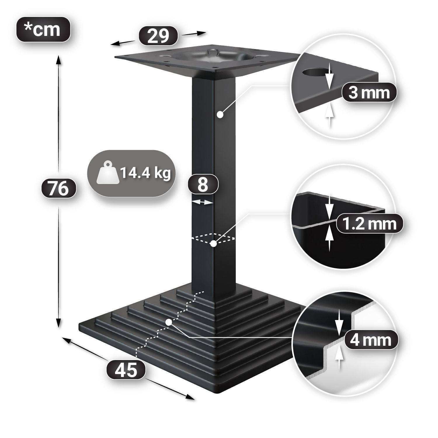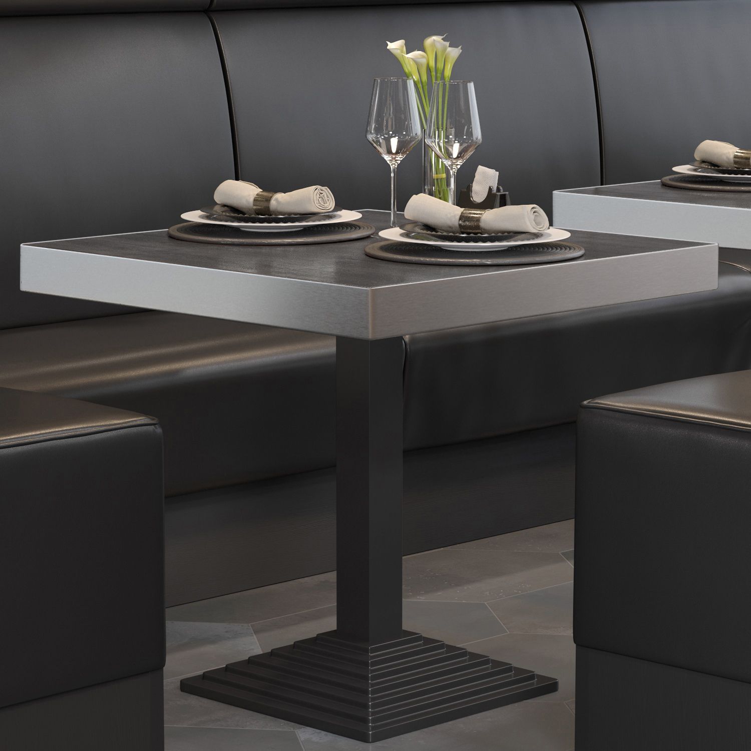 BPY | Bistro Tisch | 70 x 70 x 81 cm | Quadratisch | Edelstahl Rand | Wenge / Schwar