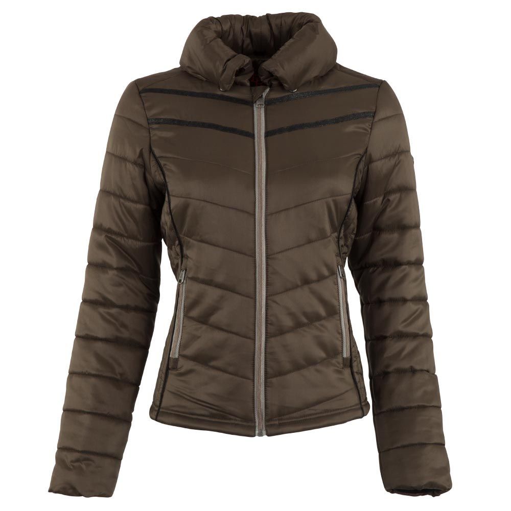 Short and waisted jacket • Padded roll-away hood • Rolled hood can be transformed into a collar • Front zipper with inner storm flap • Zipper pockets at the front • Zipped inner pocket • Ribbed cuffs inside sleeve ends • Various quilt designs • Embellished with tape and piping