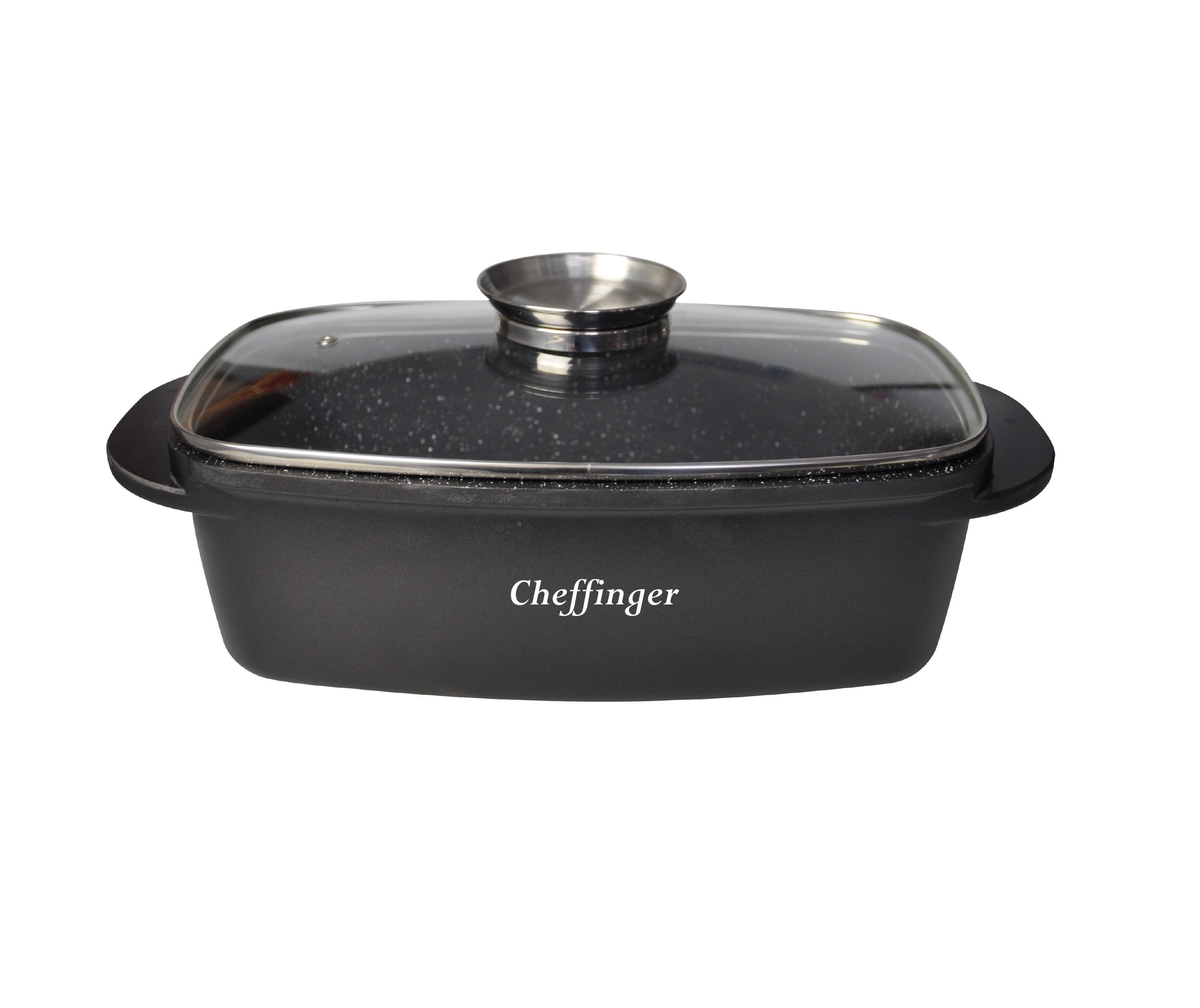 Bräter Pfanne Bratpfanne Schmortopf mit Glasdeckel Induktion 32cm Cheffinger RO-32