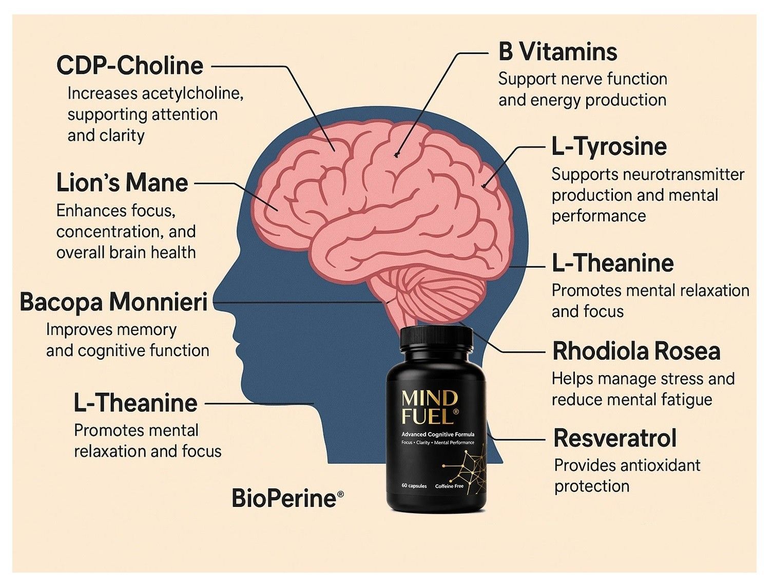 Brain For Life Mind Fuel koffeinfrei für Konzentration & Gedächtnis, 60 Kapseln