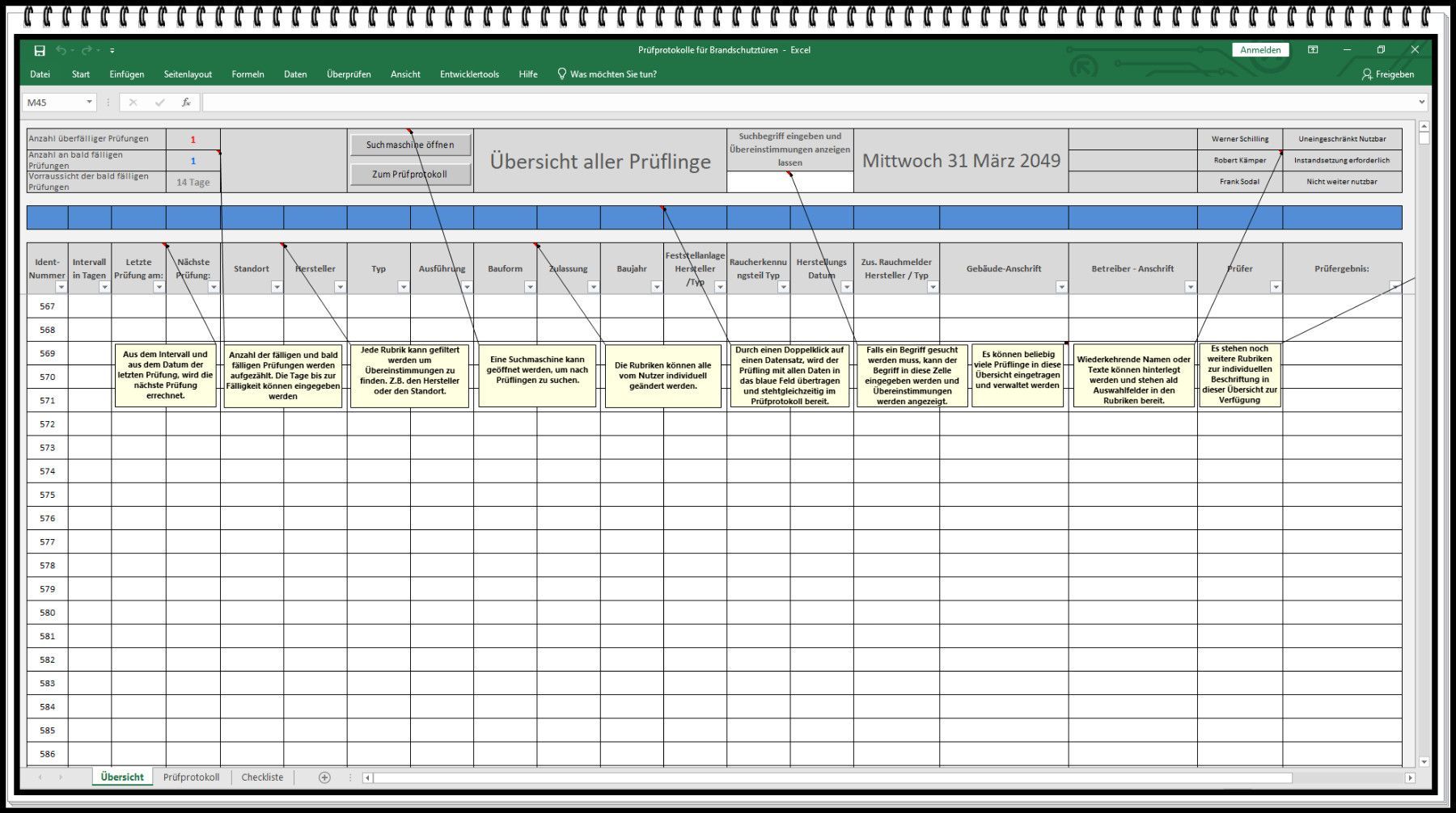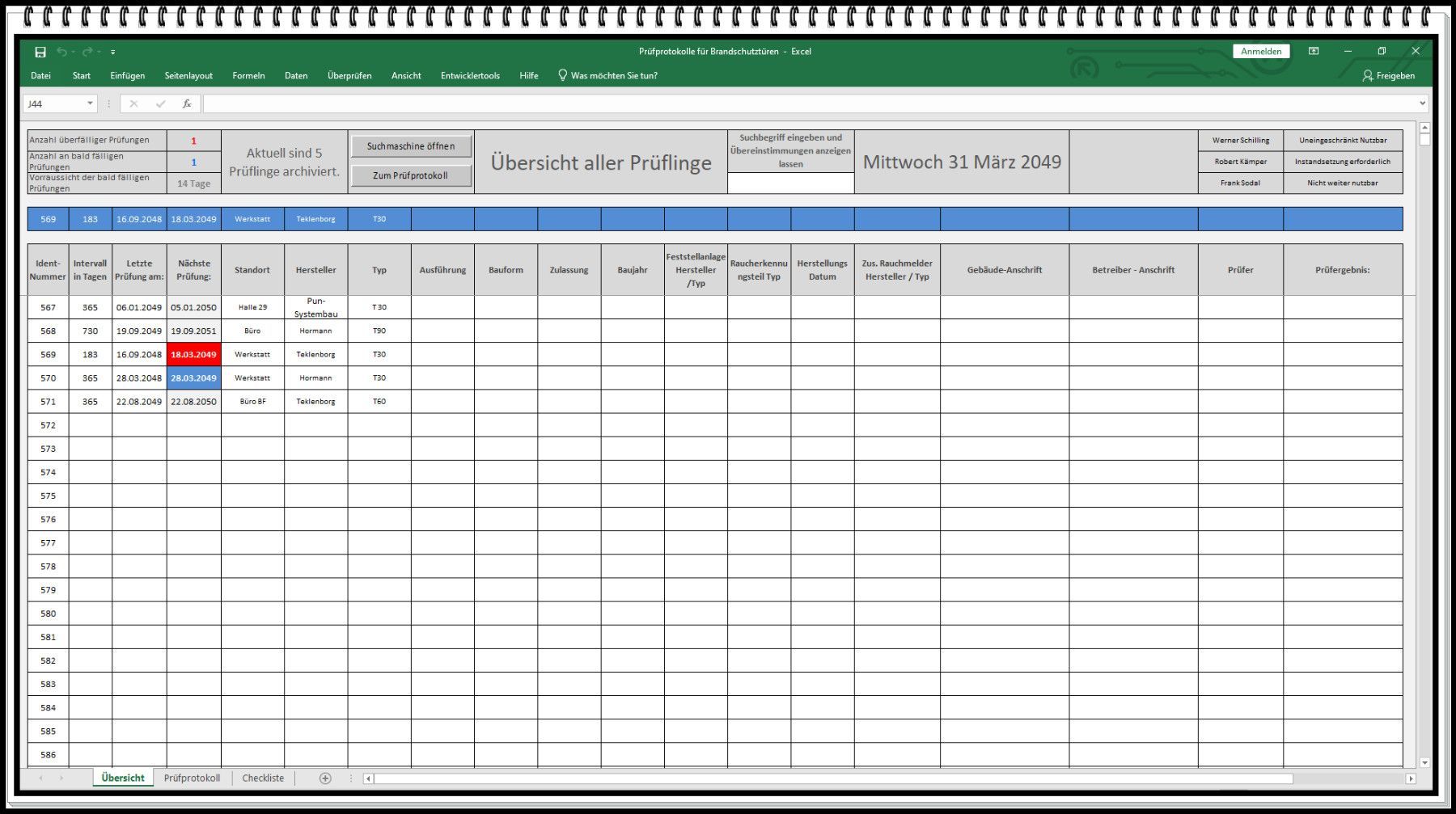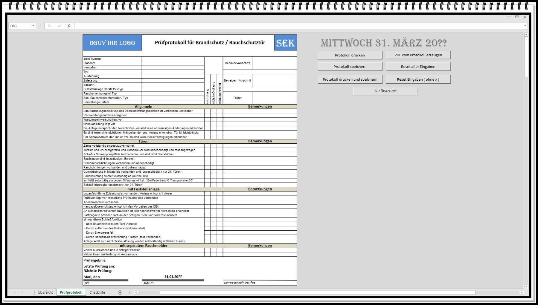 Brandschutztüren prüfen Brandschutztore Prüfprotokoll Rauchschutztüren Excel