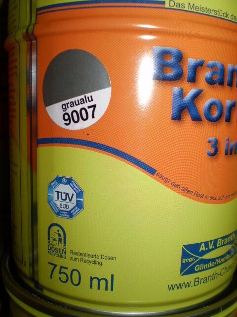Branth Brantho Korrux 3in1 Rostschutz 5 Liter Metallschutzfarbe RAL 9007 graualu