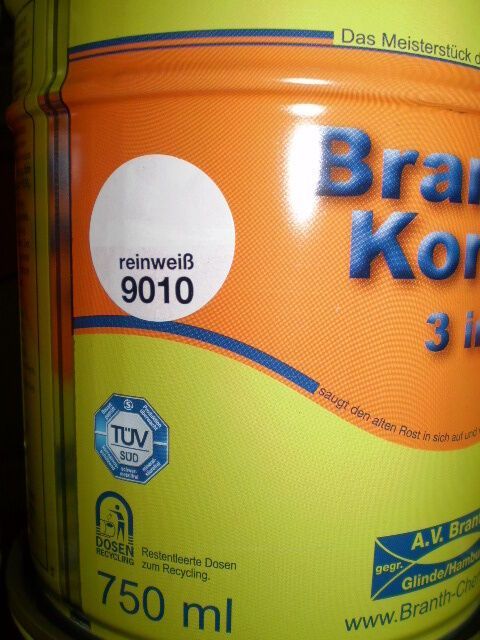 Branth Brantho Korrux 3in1 Rostschutz 750ml Metallschutzfarbe reinweiss RAL 9010