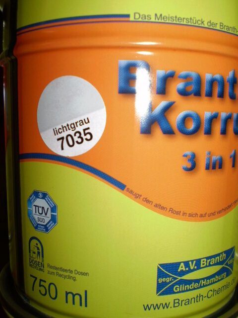 Branth Brantho Korrux 3in1 Rostschutz & Metallschutzfarbe lichtgrau 7035 750ml Oldtimer