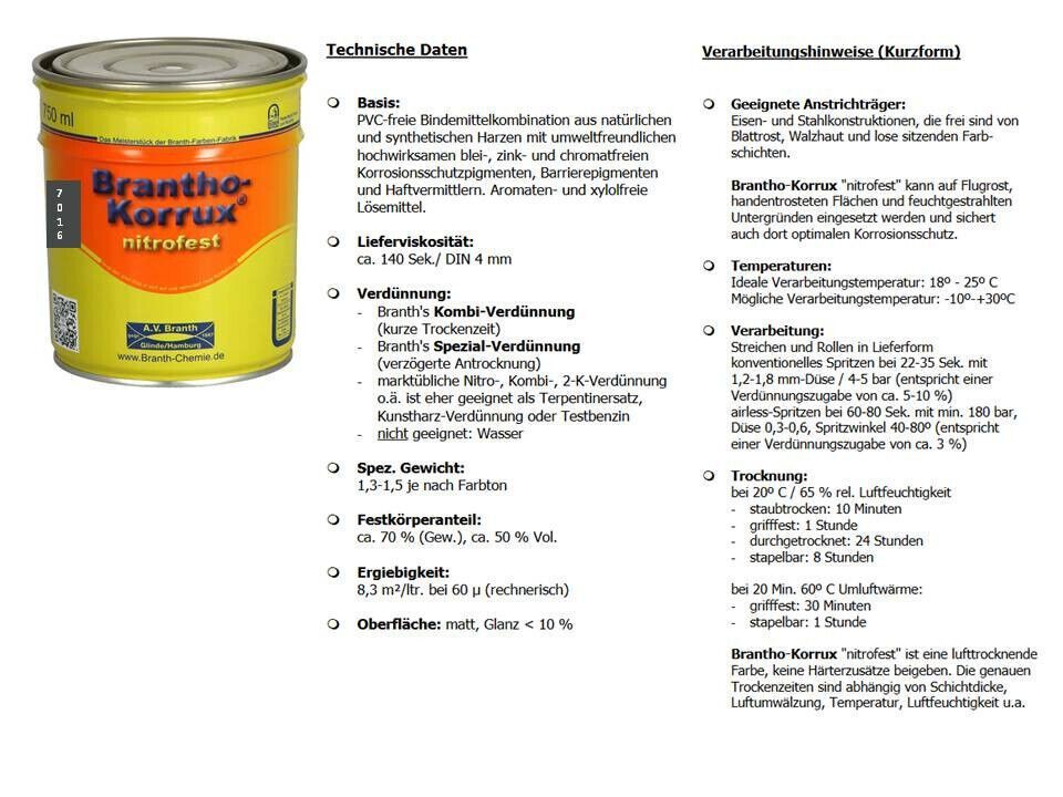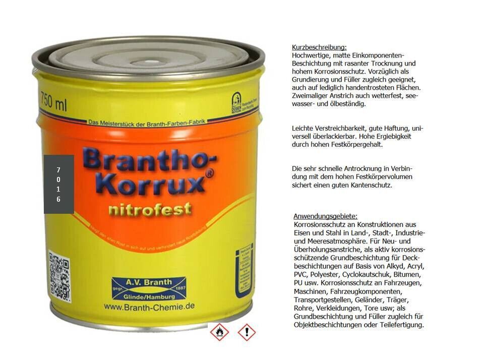 Branth Brantho Korrux nitrofest 750ml RAL 7016 anthrazitgrau Metallschutzfarbe