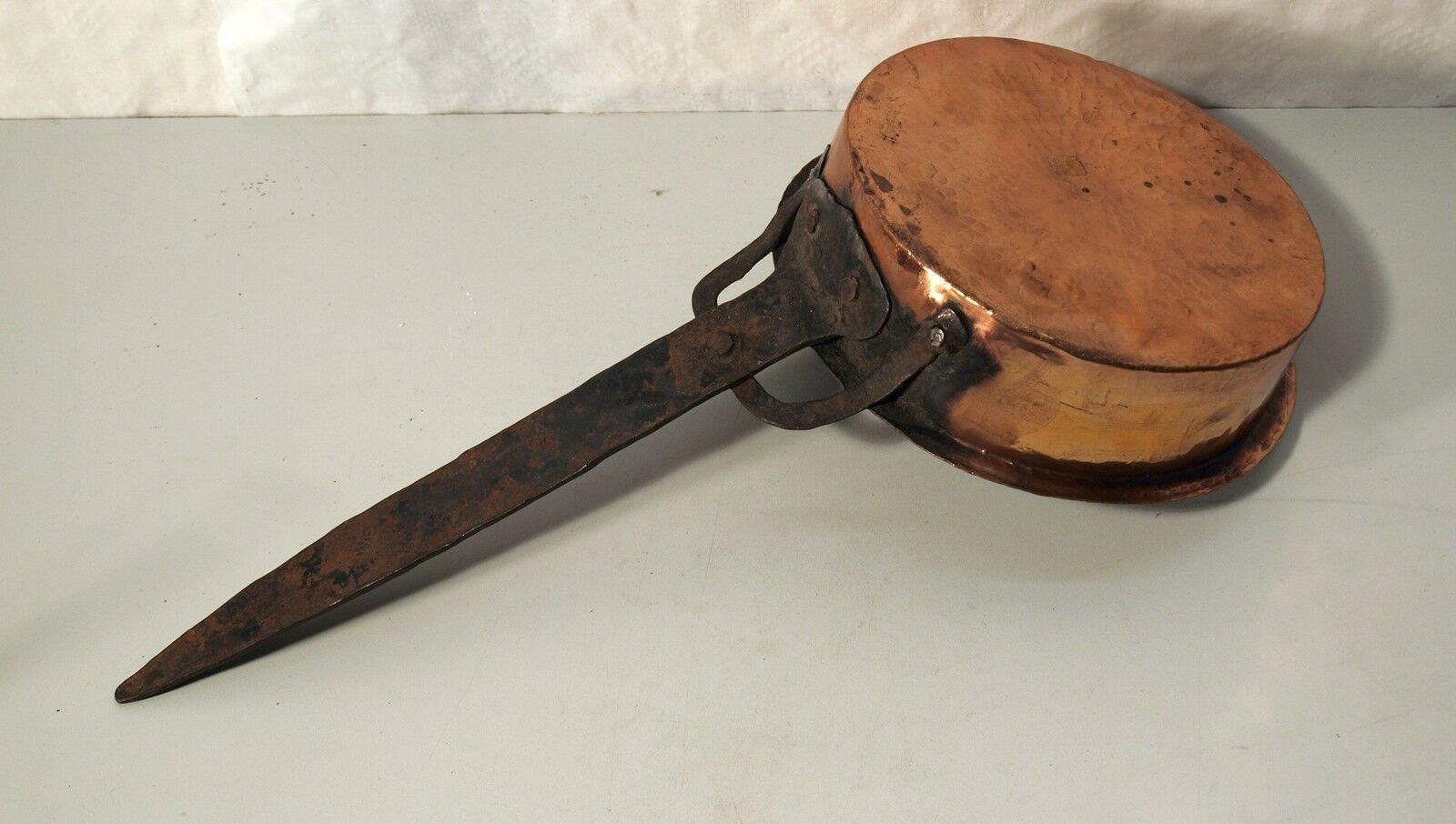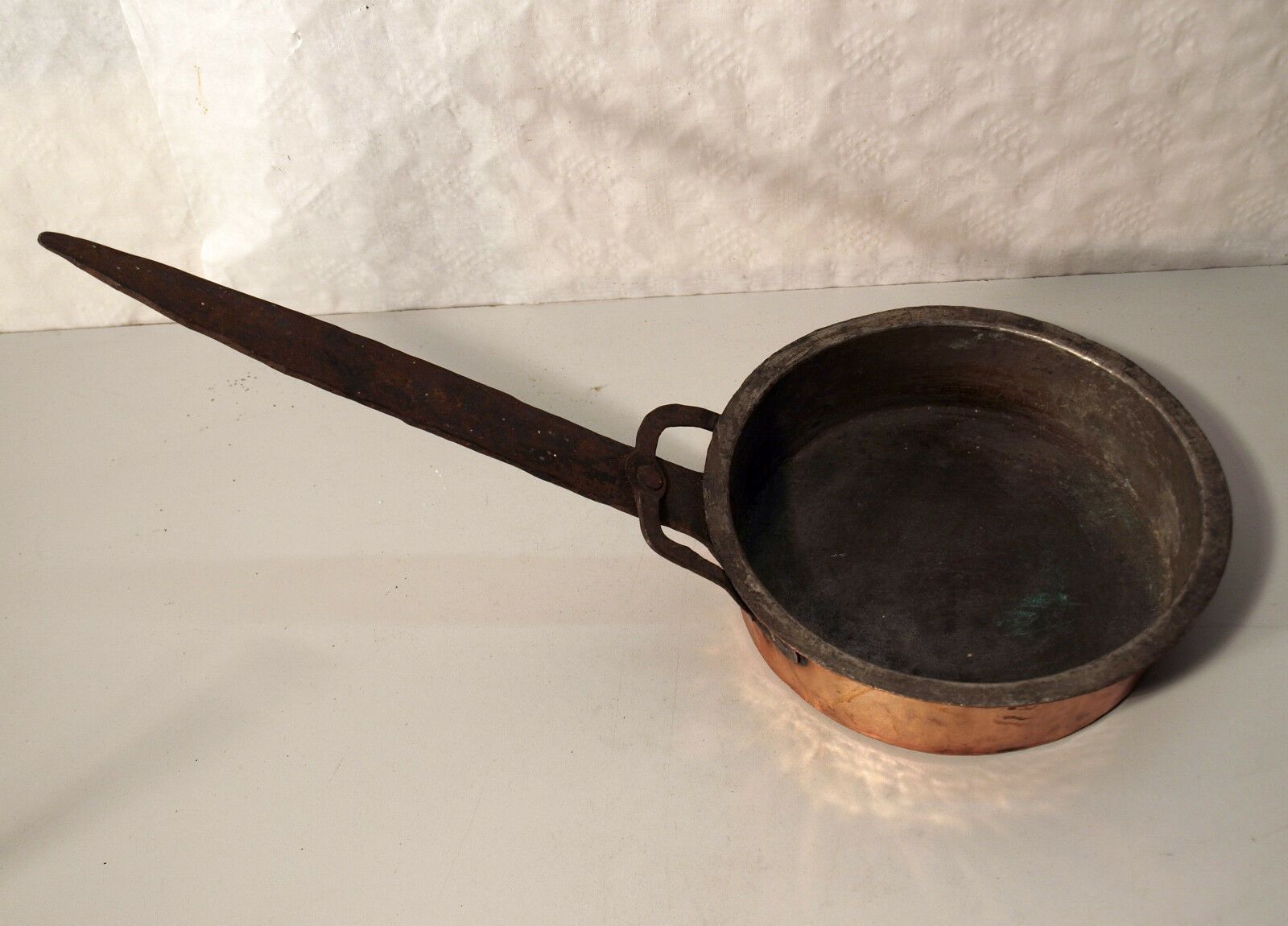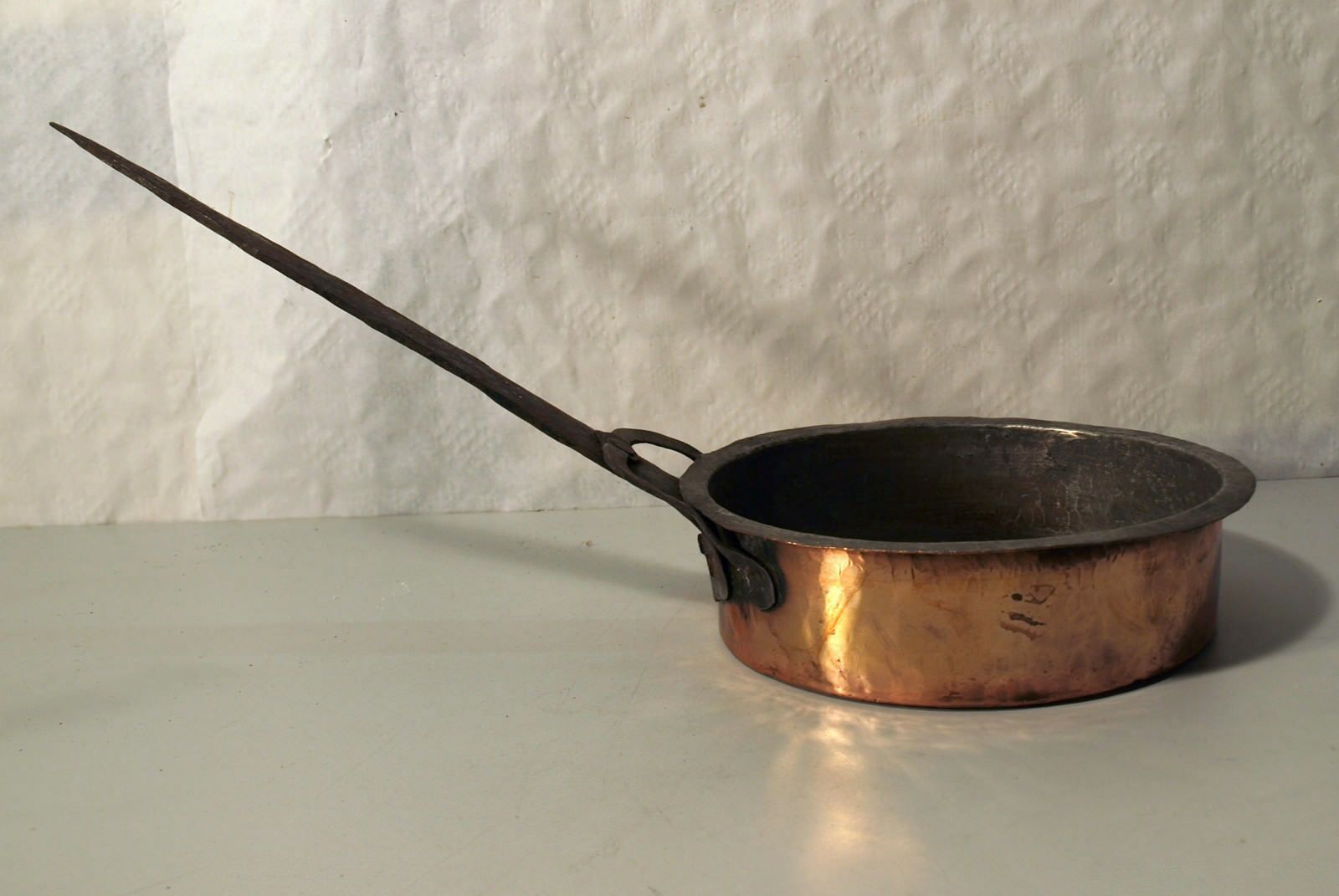 Bratpfanne um 1850 (Biedermeier). Material: Kupfer (innen verzinnt) mit Eisengriff. Gut erhalten! Maße: L 46, Durchmesser 21 cm. Antikes am Deich - Inh: Oliver Kipp-Trense G M T Sprache erkennen Afrikaans Albanisch Arabisch Armenisch Aserbaidschanisch Baskisch Bengalisch Bosnisch Bulgarisch Burmesis