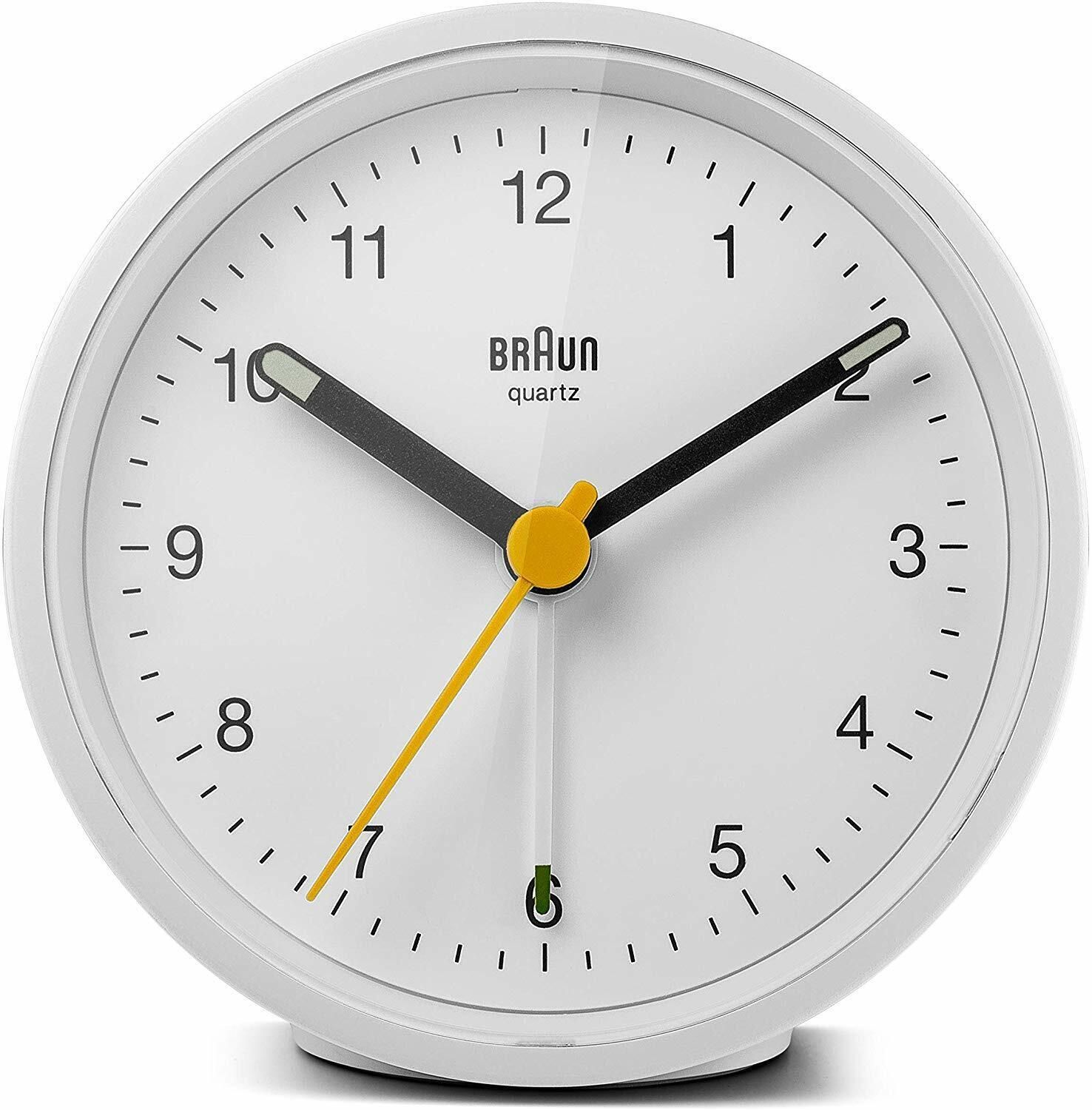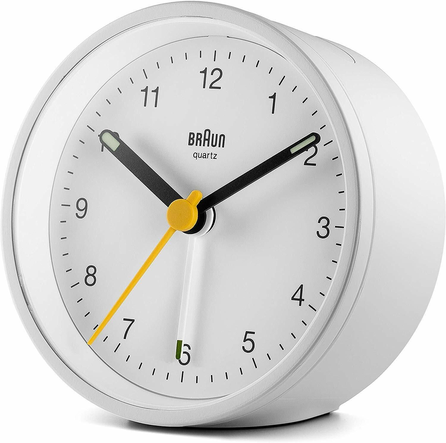 Braun Braun BC12W Analoger Wecker Quarz Schlummerfunktion Licht Crescendo-Alarm Weiß