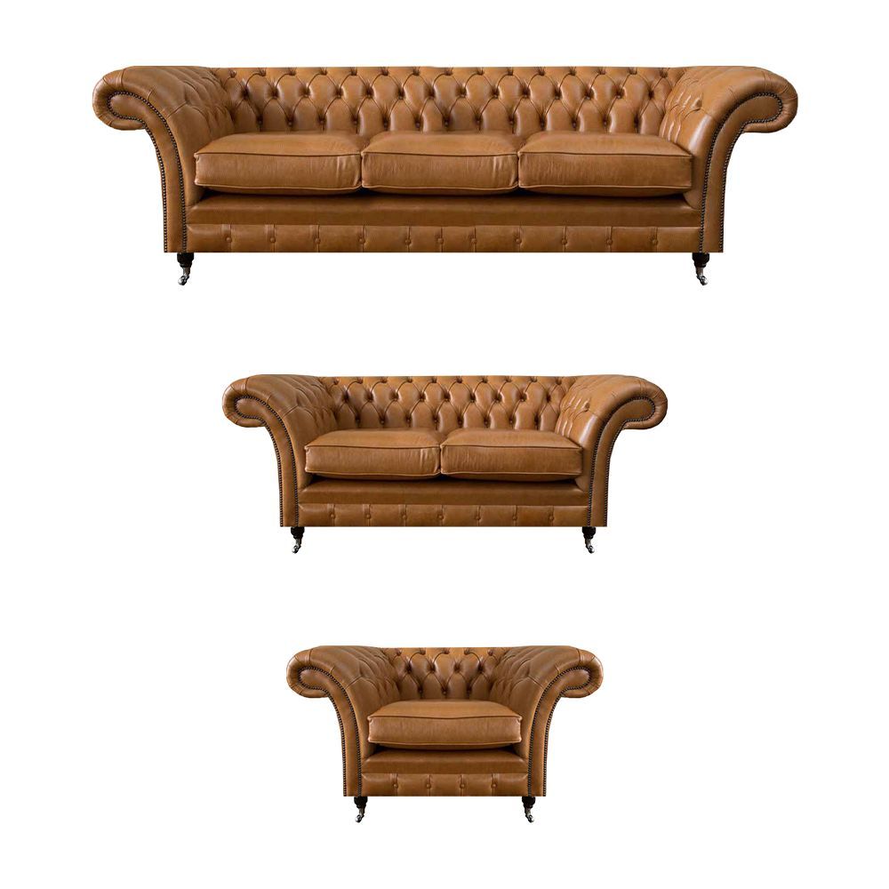 Braun Chesterfield Luxuriöse Sofagarnitur Set 3 + 2 + 1 Wohnzimmer Ledersofa