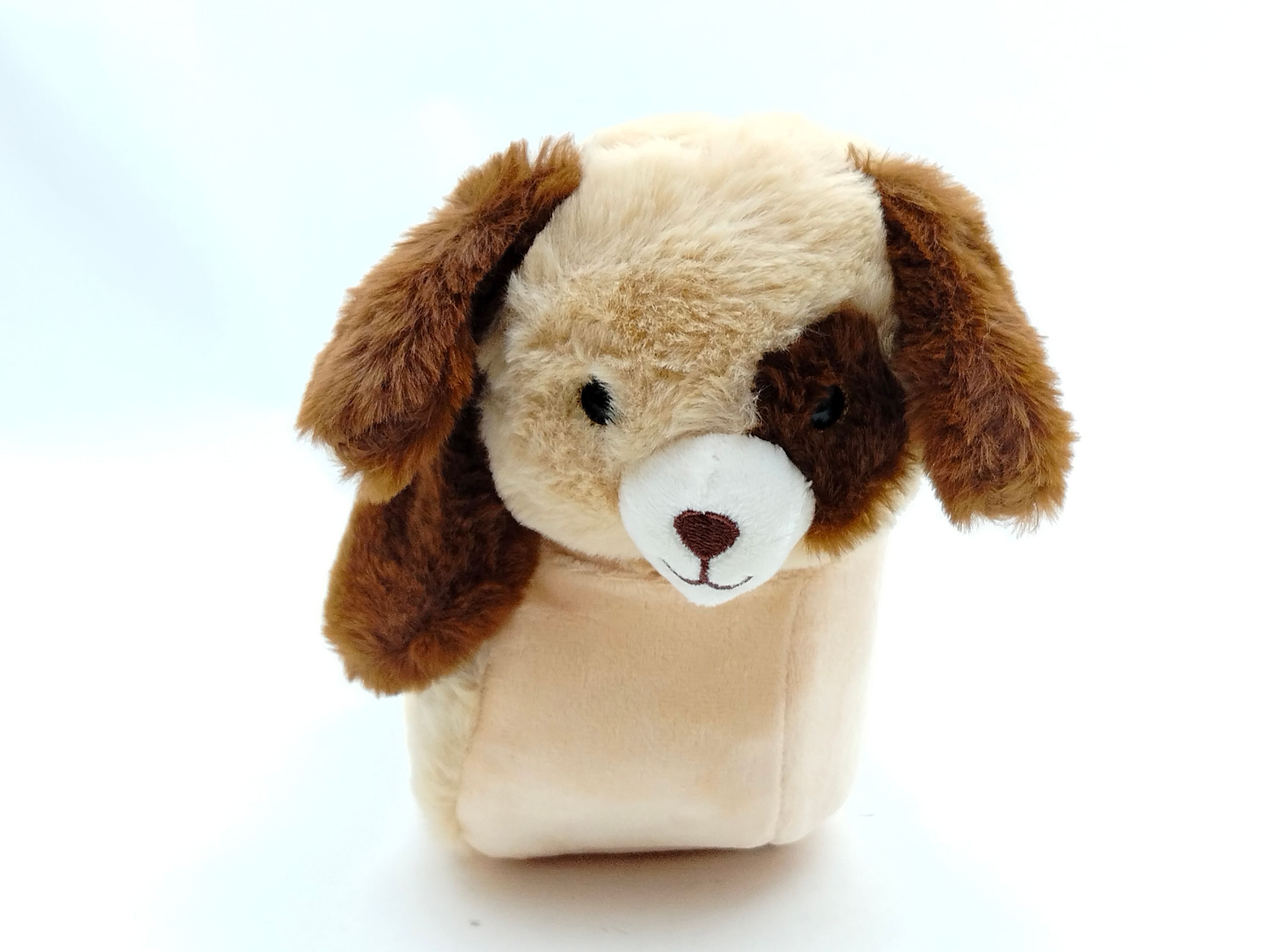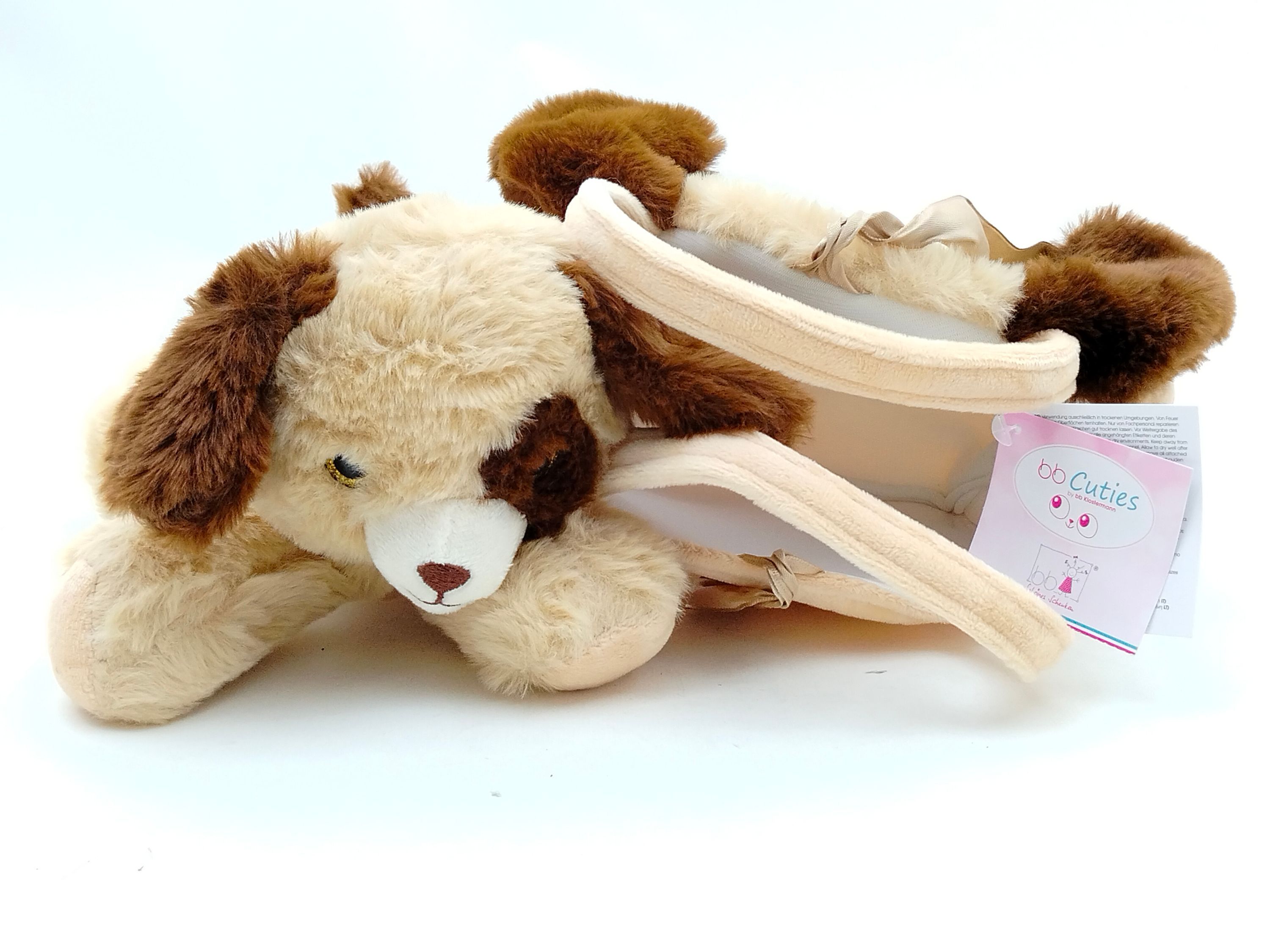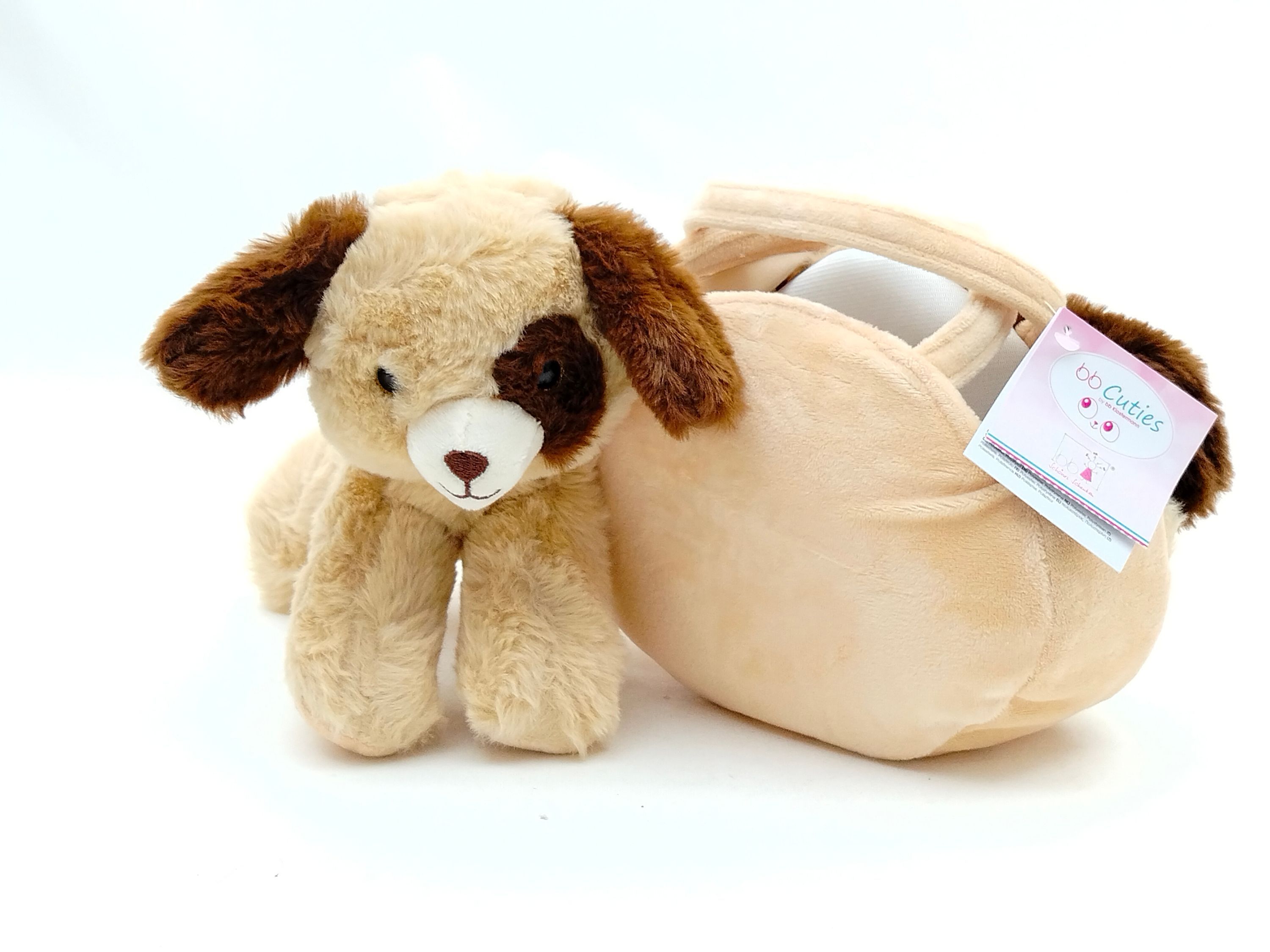 Braun gefleckte Plüschtasche im Hündchendesign mit braun geflecktem Hündchen