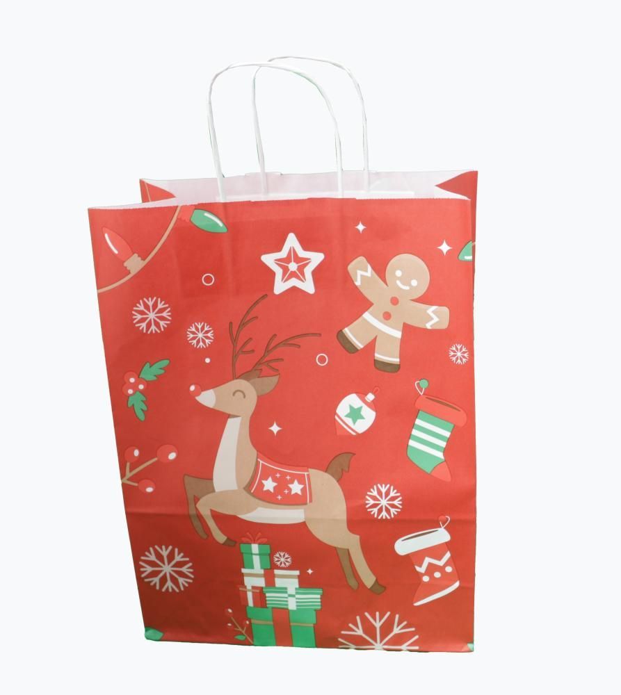 Braune (26 + 12x35 cm) Papiertasche mit Papierkordeln bedruckt, 90g/ m², X-Mas, 25er