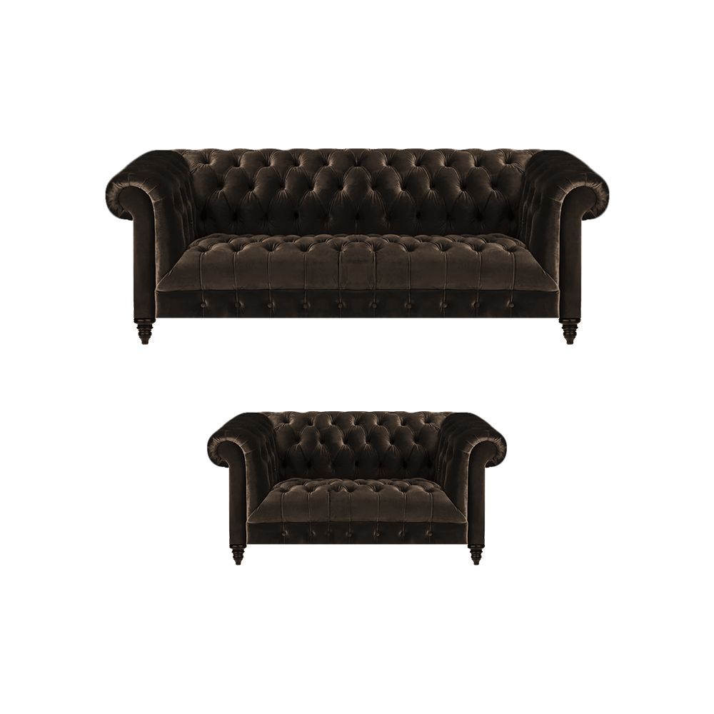 Braune Chesterfield Sitzmöbel Wohnzimmer 2-Sitzer Luxus Dreisitzer 2tlg