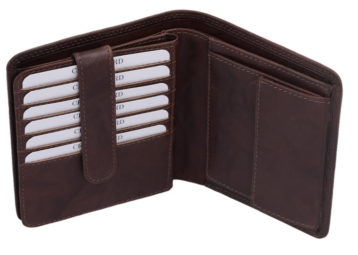 braune Herrenbörse hochformat mit vielen Kartenfächern, Leder