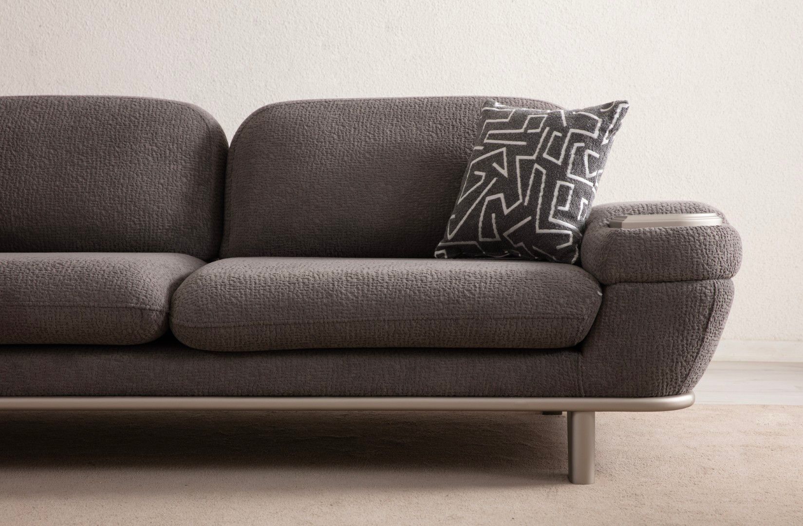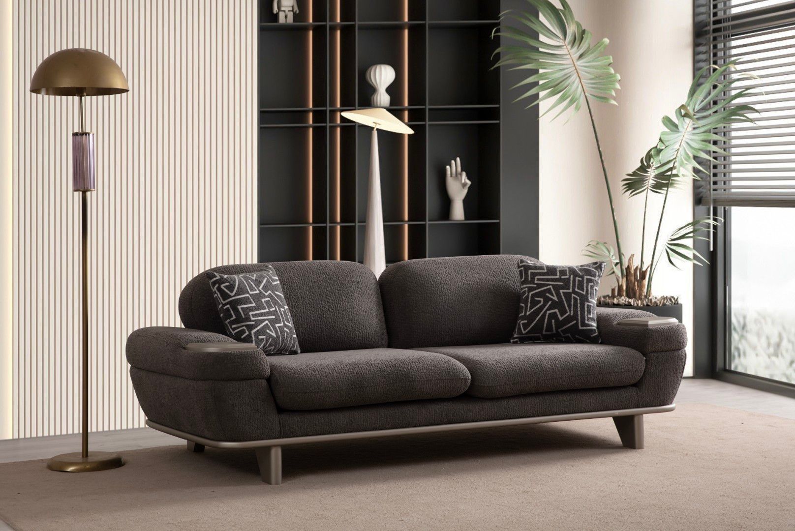 Brauner Dreisitzer Wohnzimmer Polstersofa Designer Textilcouch