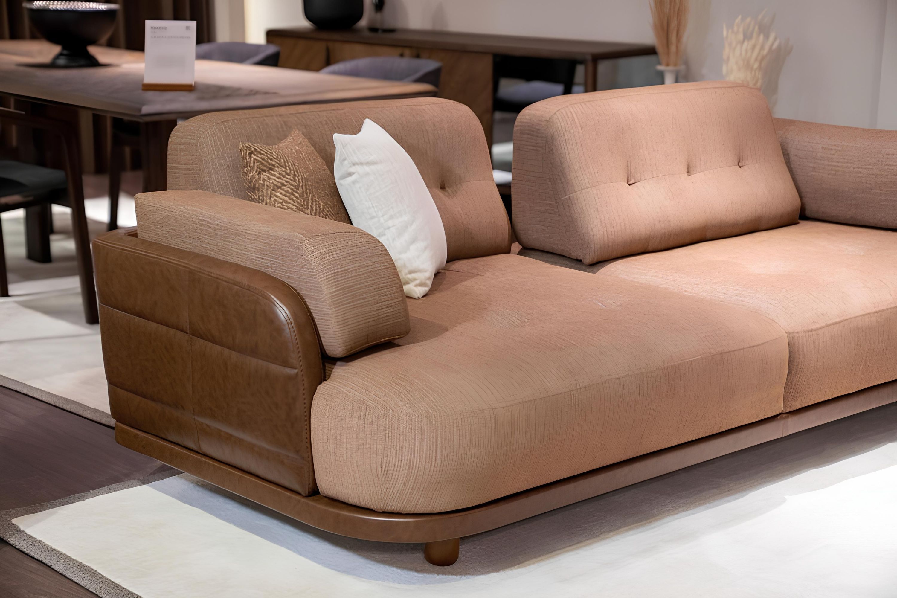 Sofa 2-Sitzer Braun Couch Zweisitzig Ledersofa Edelstahl Holz Modern