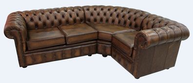 Ecksofa Ledersofa Braun Polster Eck Couch Garnitur Sitz Design Chesterfield
