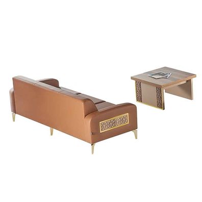 Sofa 3-Sitzer Couch Couchtisch Set Modern Ledersofa Quadratisch Braun