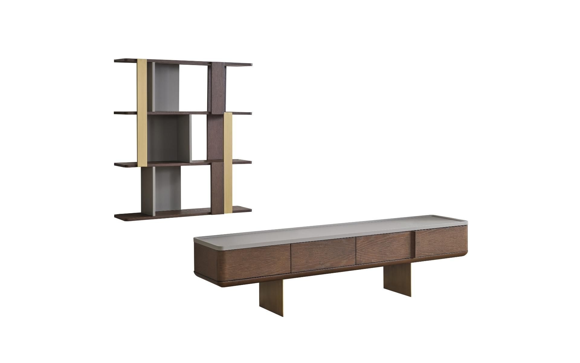 Braunes Wohnzimmer Set Stabiler Tv-Schrank Designer Holz Ablageregale