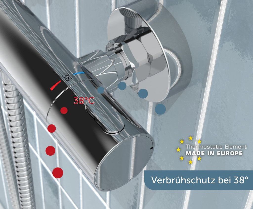 Brause-Thermostatmischer, Temperatursperre bei 38°, 1/2" Brauseanschluss