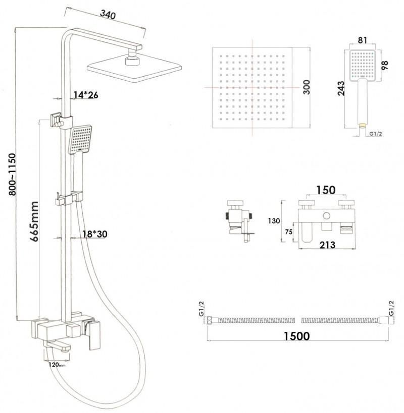 Brausegarnitur - mit Wannenarmatur - Handbrause - und Regenbrause 25cm