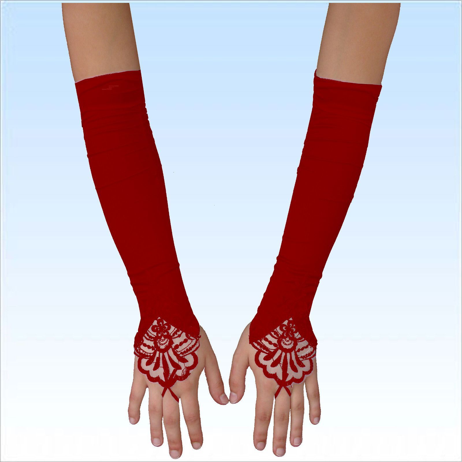 Brauthandschuhe Mia Fingerlos Satin rot Handschuhe Abendgarderobe