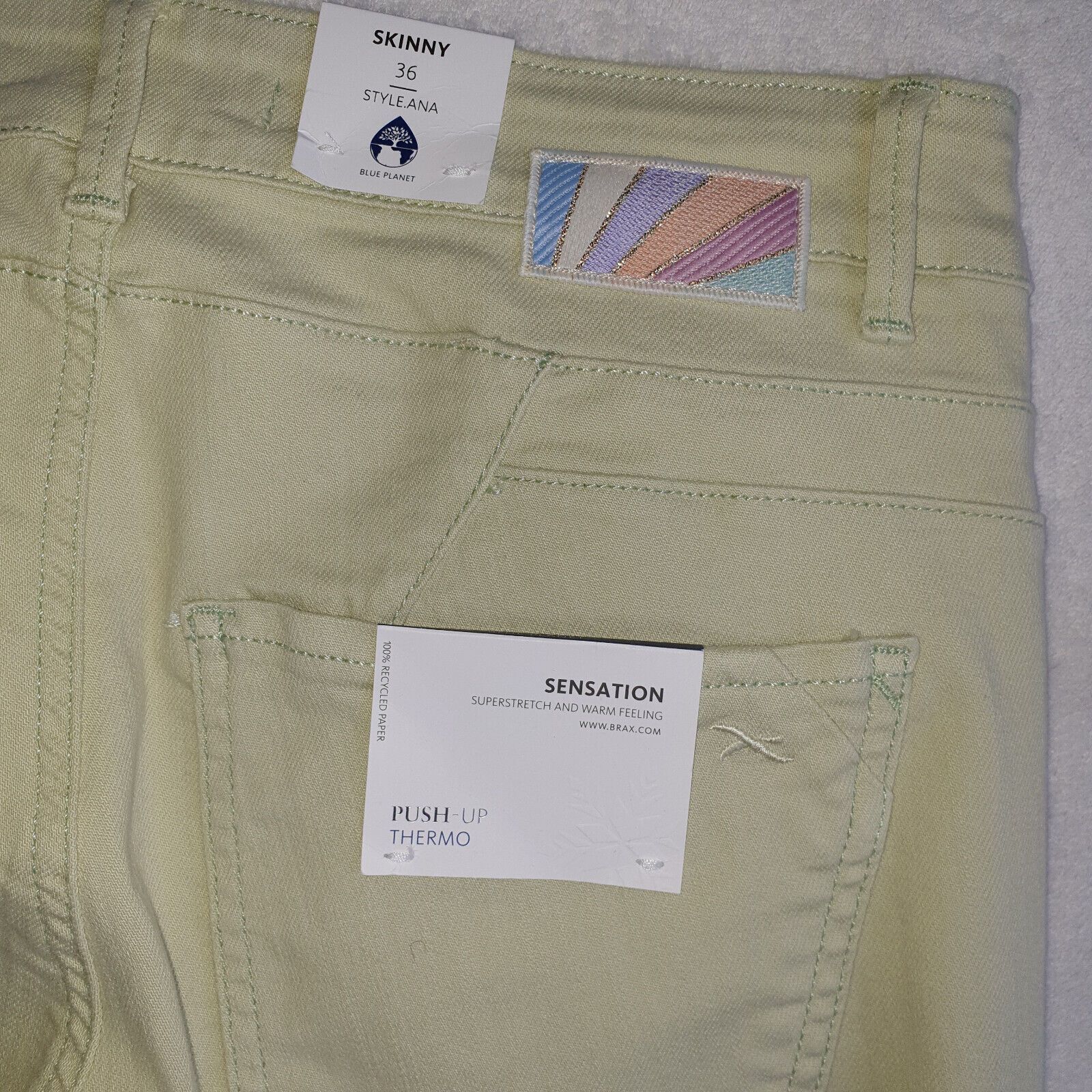 BRAX Jeans Skinny Modell: Ana Sensation Push Up Thermolite Die modische Ana Röhrenjeans von BRAX zeigt sich in moderner körpernaher Silhouette und zaubert dank Push-up-Effekt eine tolle Figur. Stretch Denim Gr. 36, 38, 40, 42, 44, 46 L 30, 32, 34 Farbe: pink (Icederose), hellgrün , blau Material: 73