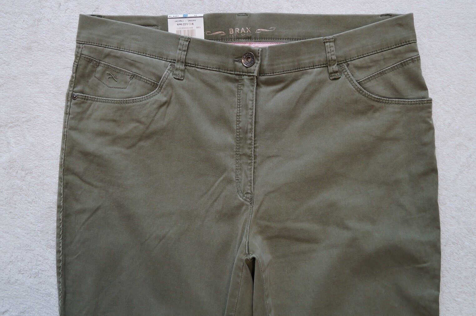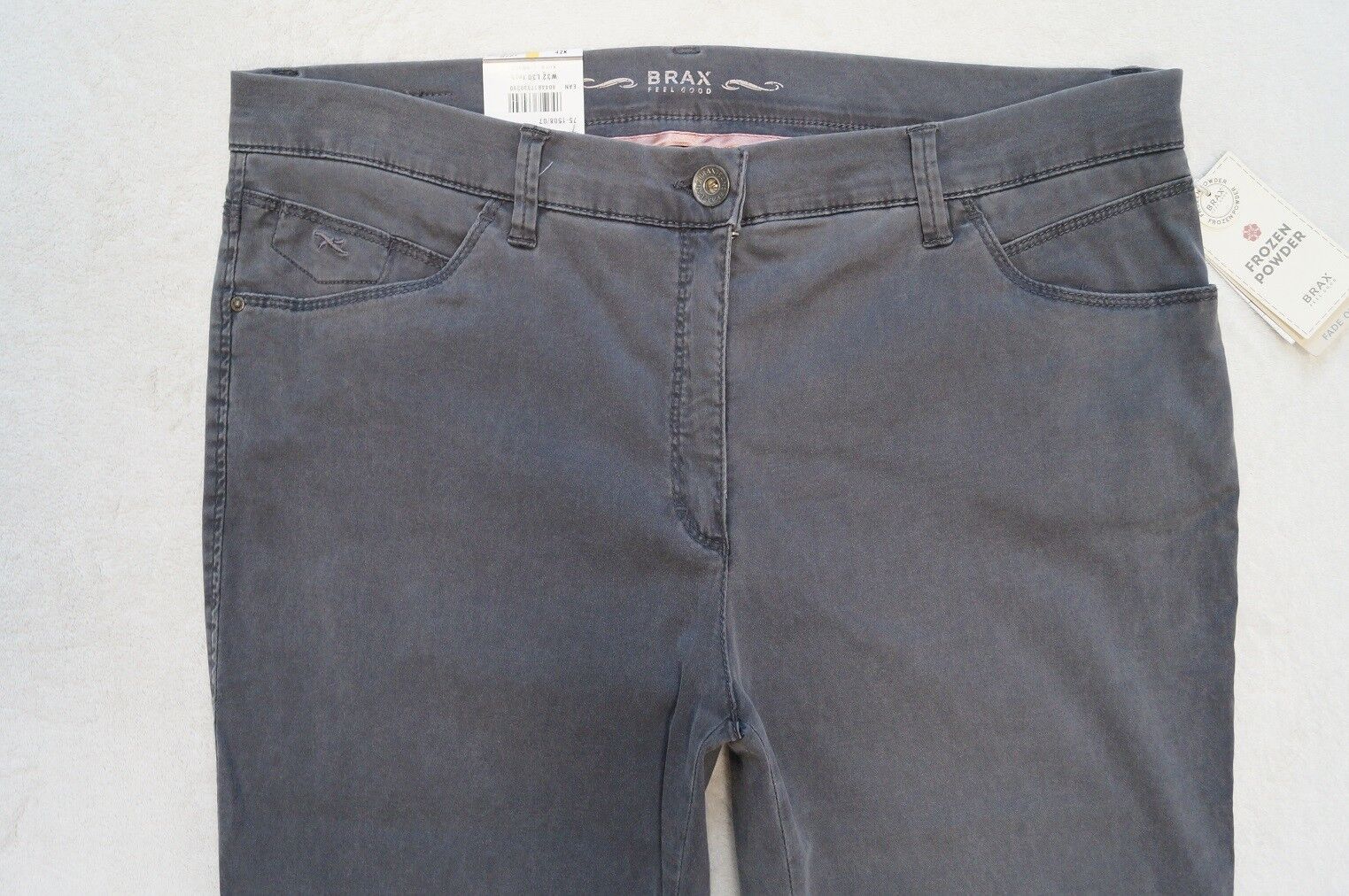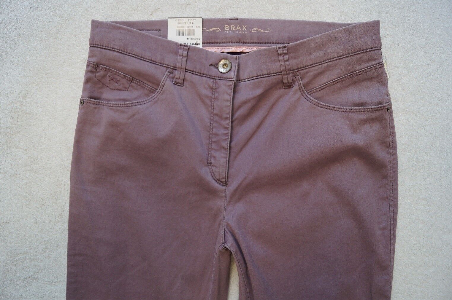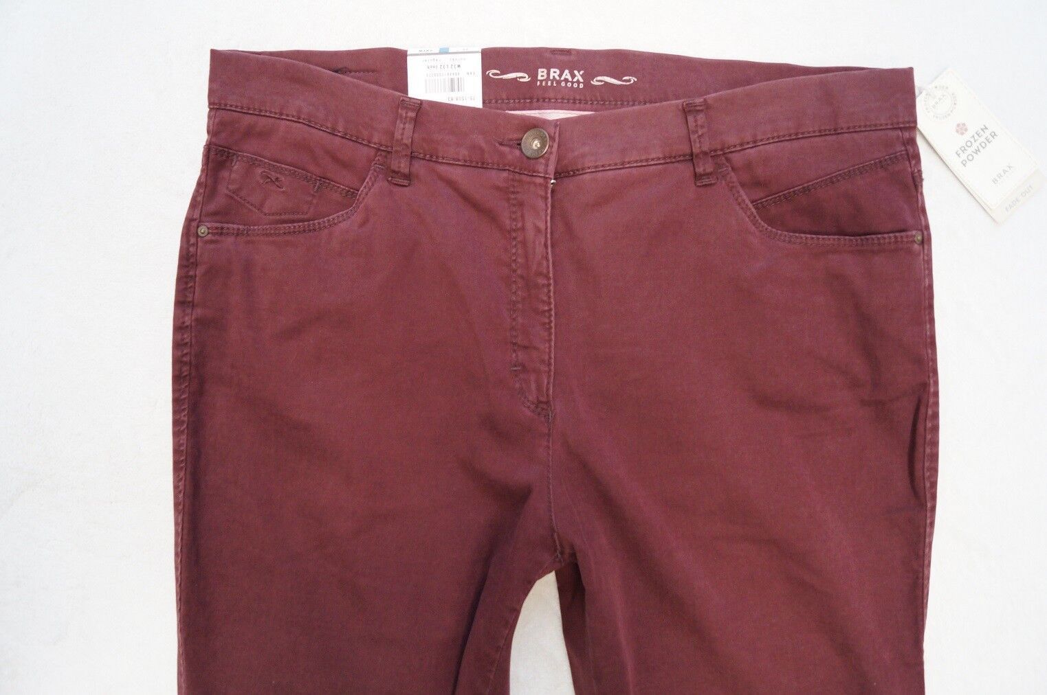 BRAX Hose Modell: Mary Trend FROZEN POWDER Fade out SLIM FIT Gr. 36, 38, 40, 42, 44, 46 L 30, 32, 34 Farbe: grau , grau (09), flieder (84), dunkelbeige (55), olivgrün (35) oder weinrot - schmale Passform, - extraschmaler Oberschenkel Material: 64%Lyocell,34%Baumwolle, 2%Elasthan Textilpflege: 30°... Mehr