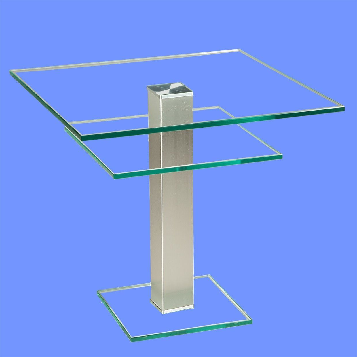 BRB1281 Beistelltisch Klarglas 50x50cm Ablage Höhe 54cm 80x80mm Edelstahlsäule