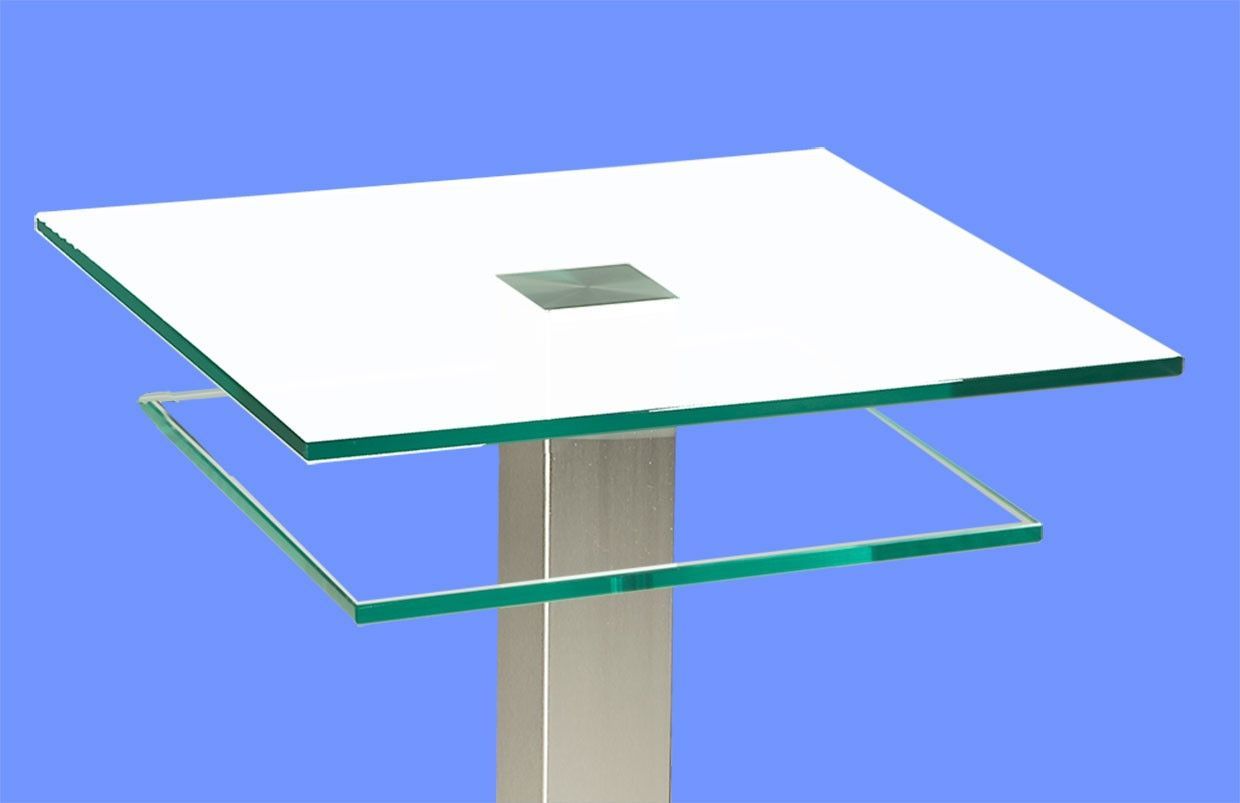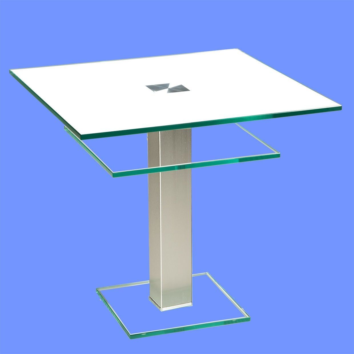 BRB3281 Beistelltisch Weißglas 50x50cm Ablage Höhe 54cm 80x80mm Edelstahlsäule