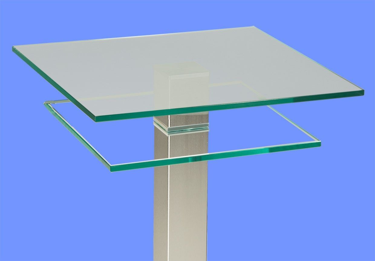 BRB4291H Beistelltisch Satinoglas 60x60cm Ablage Höhe 54cm 80x80mm Edelstahlsäule