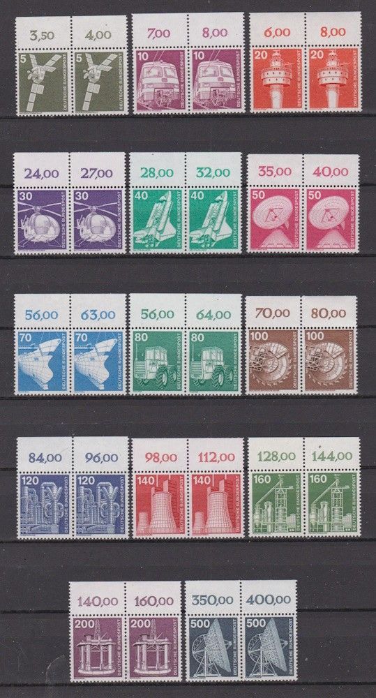 BRD 1975 postfrisch wPaar mit Oberrand MiNr. 846-859 Industrie und Technik