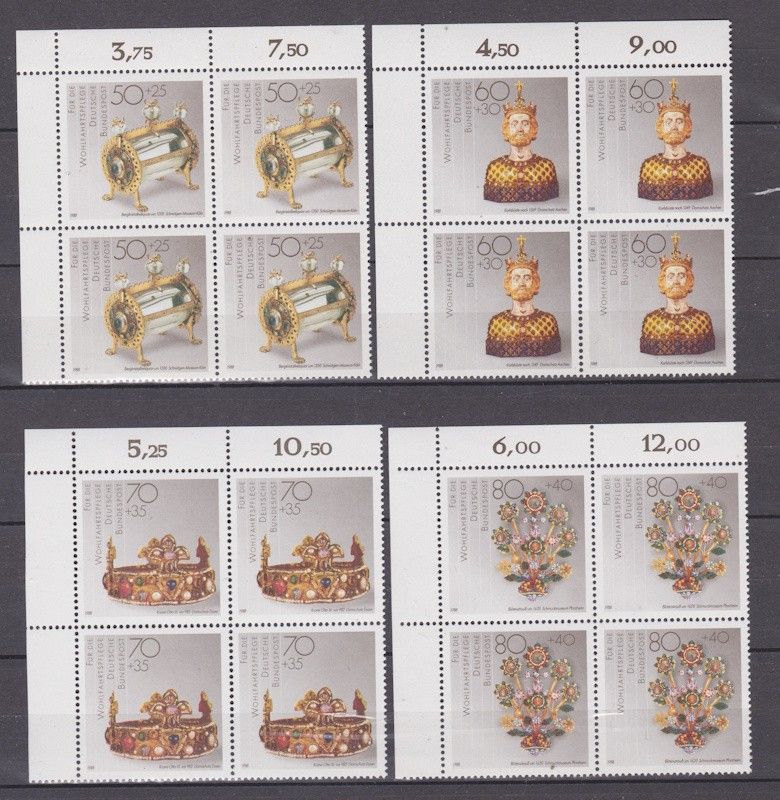 BRD 1988 postfrisch vierer Block MiNr.1383-13860 Für die Wohlfahrtspflege Ecke oben links Gold- und Silberschmiedekunst