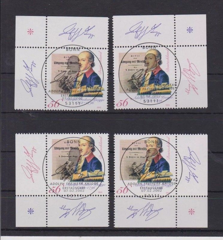 BRD 2002 gestempelt ESST Bonn alle 4 Ecken MiNr. 2241 Adolph Freiherr von Knigge