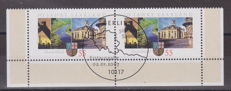 BRD 2007 gestempelt ESST Eck-Rand paar MiNr. 2581 50 Jahre Bundesland Saarland